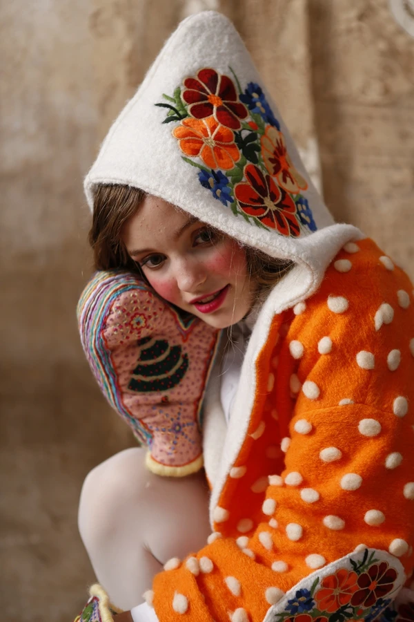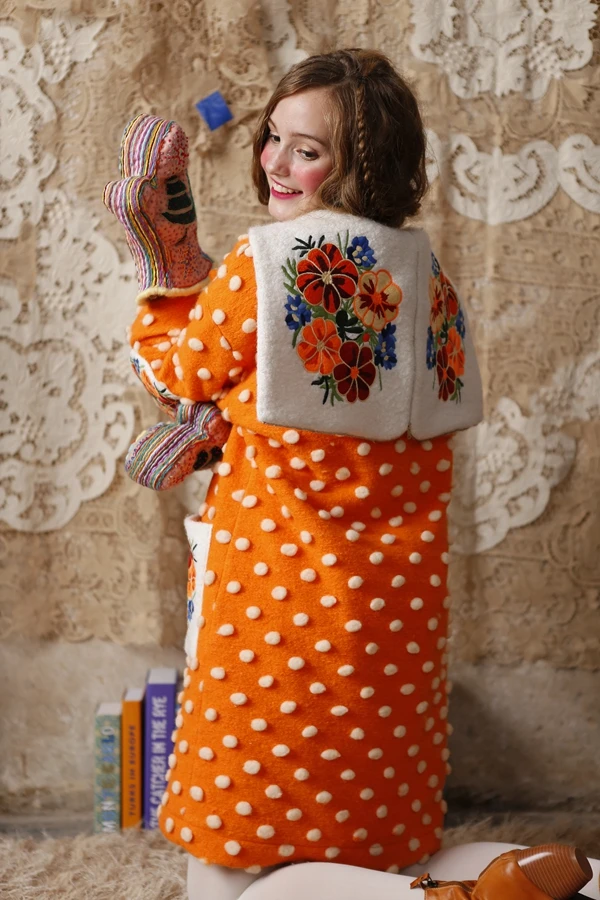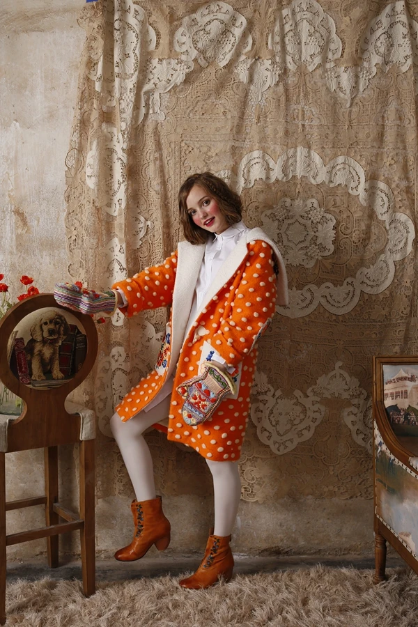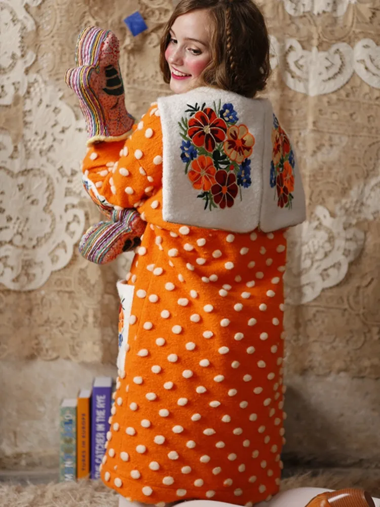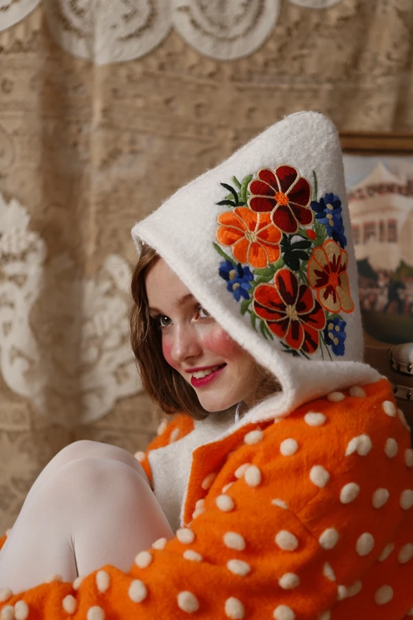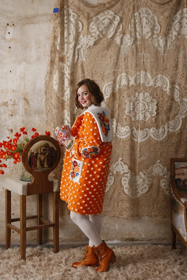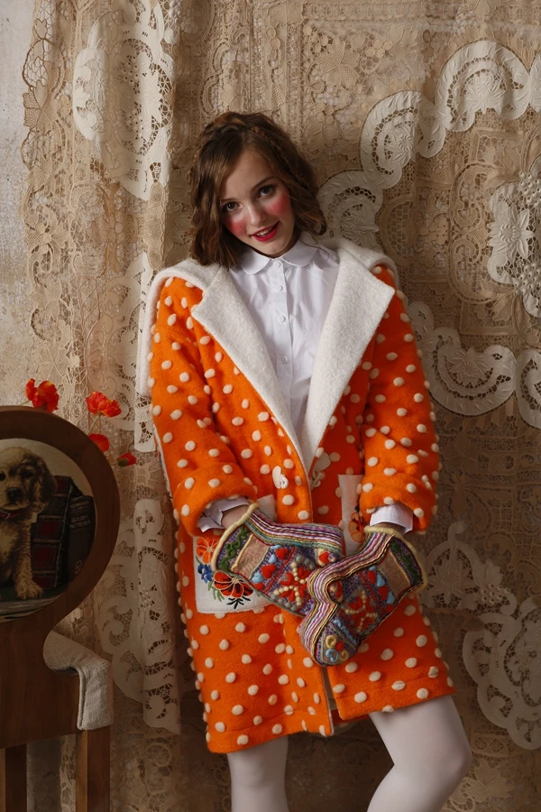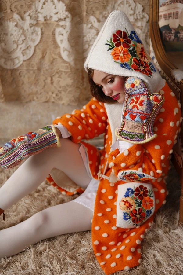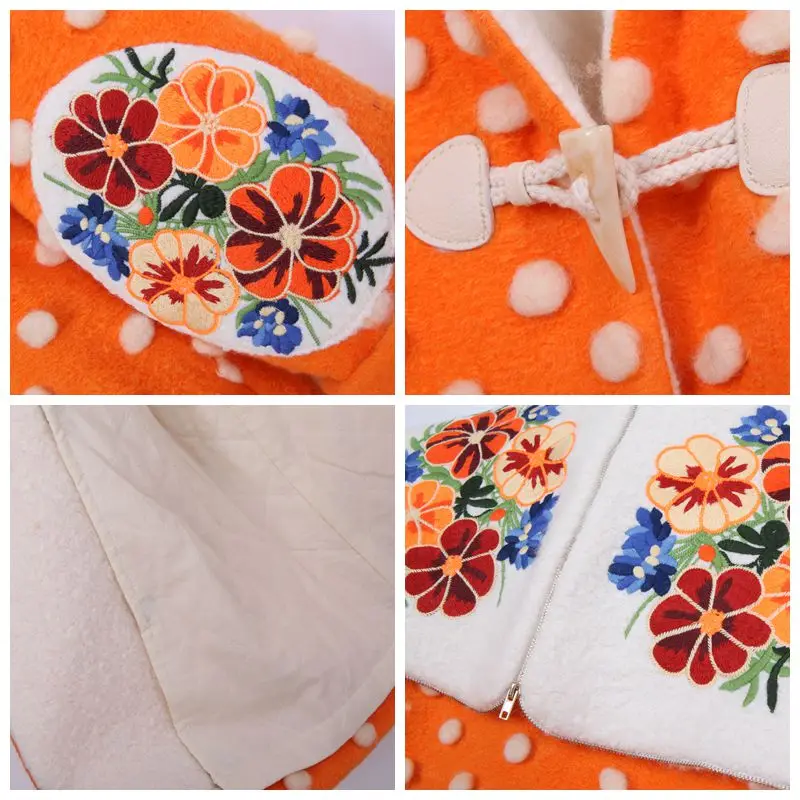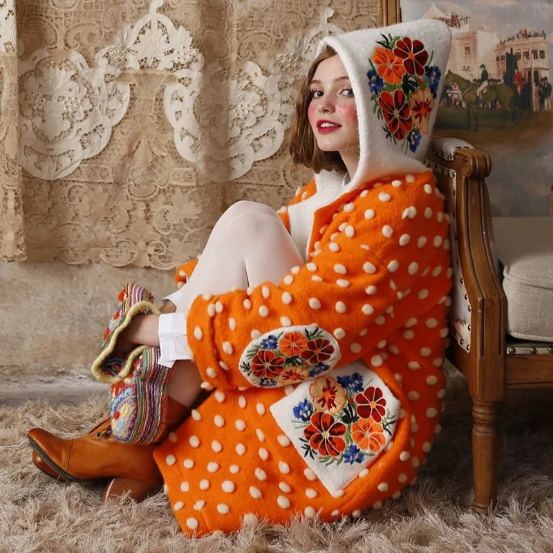 Бесплатная доставка, женская зимняя Милая девушка из леса с капюшоном, шерстяная Верхняя одежда с трехмерной жаккардовой вышивкой, плотная теплая верхняя одежда