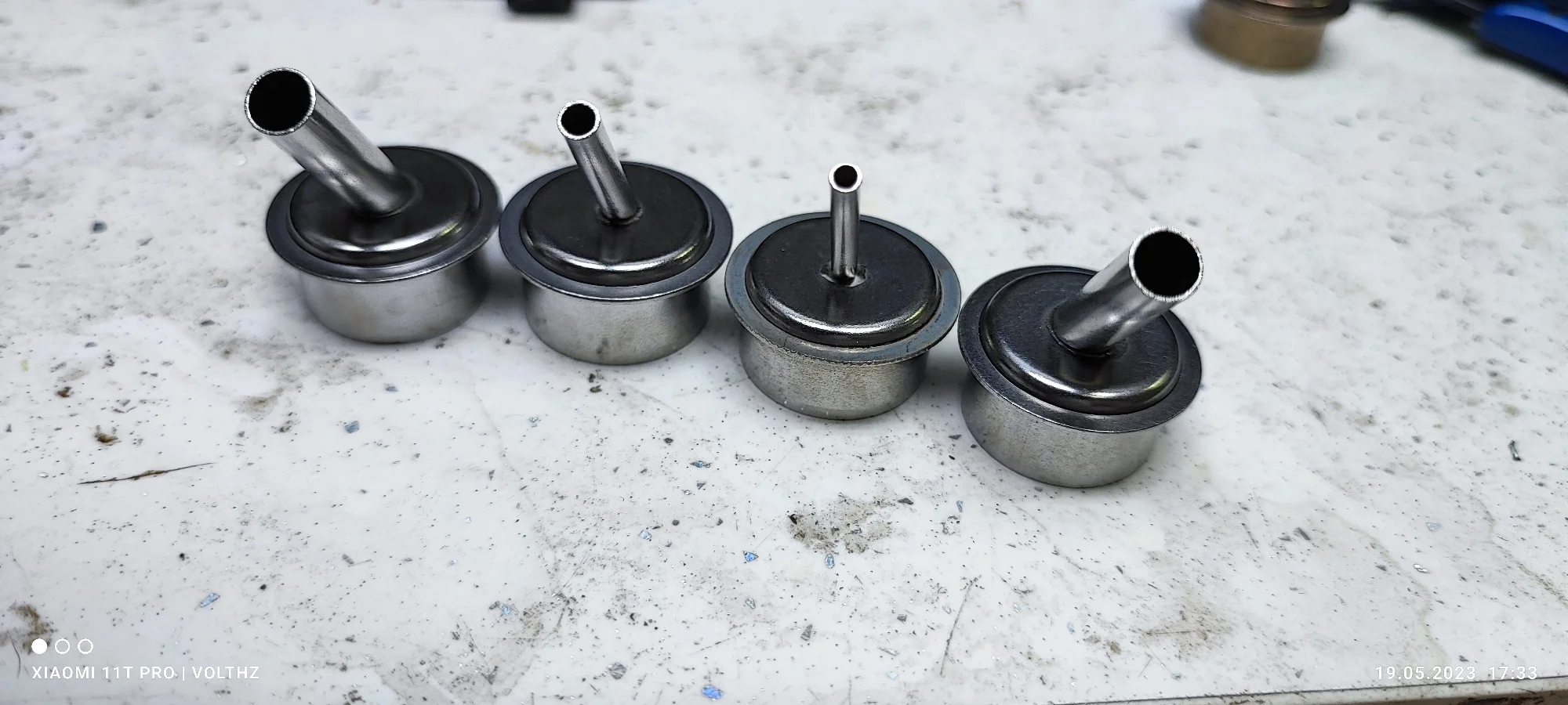 6 kinds Hot Air Gun Resisting Nozzles for Quick 861dw Rework Station, Silver Top quality 861dw Heat Gun Resisting Nozzles, 45 Degree Curved Angle Nozzle Sleeve for QUICK 861DW TR1300A Hot Air Station.