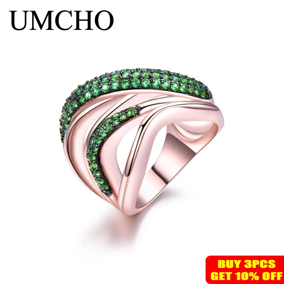 UMCHO зелёный Изумрудный камень, кольца для женщин, подлинное сереб...