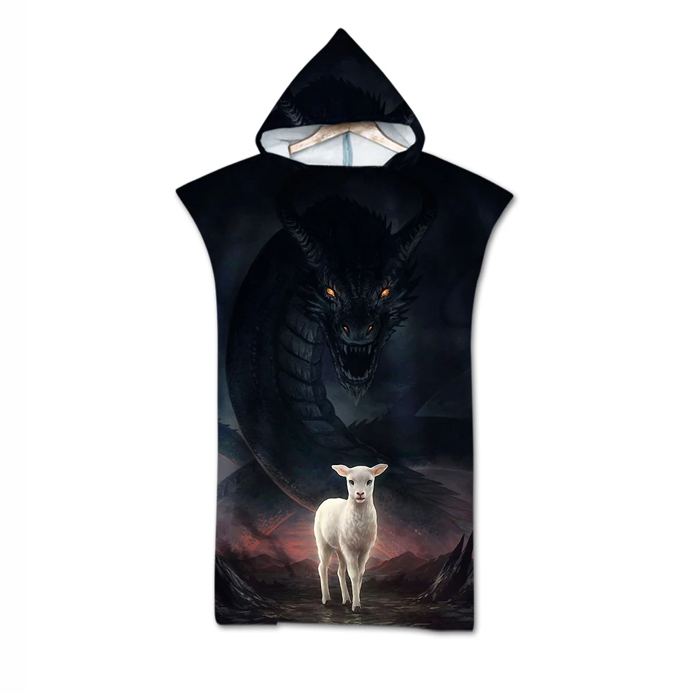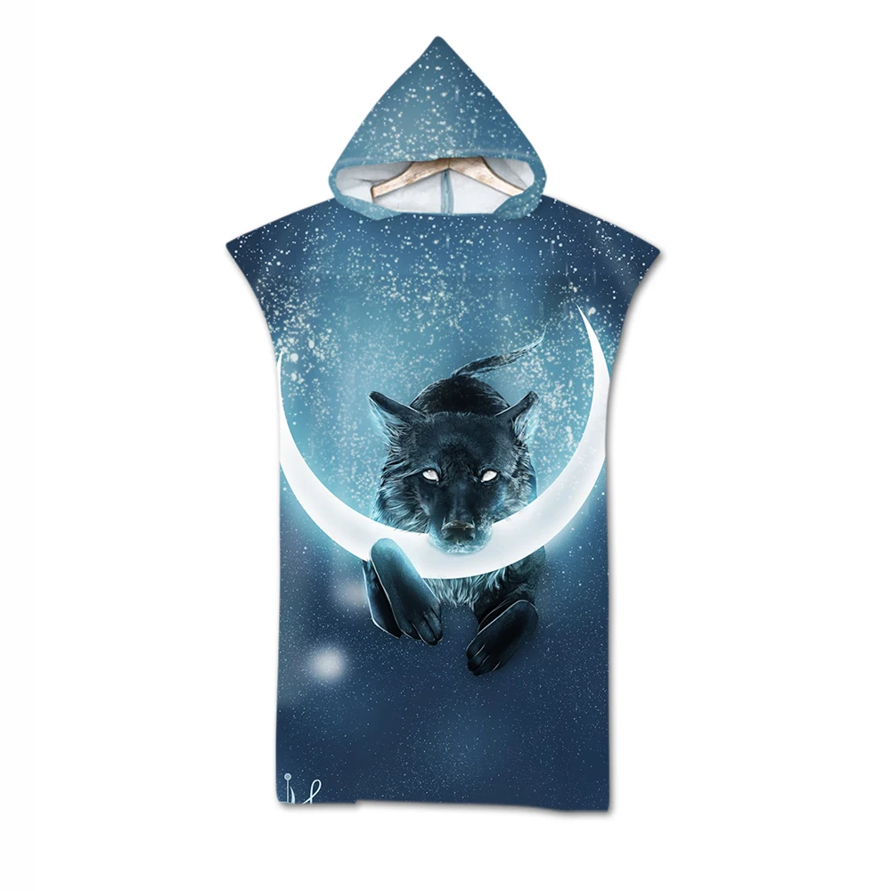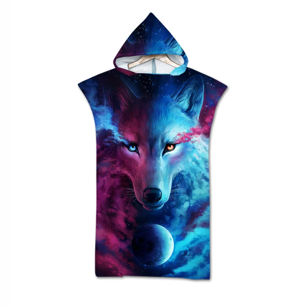 Пляжное полотенце для мужчин и женщин, банное полотенце с капюшоном для взрослых, 3D-рисунок льва, волка, оленя