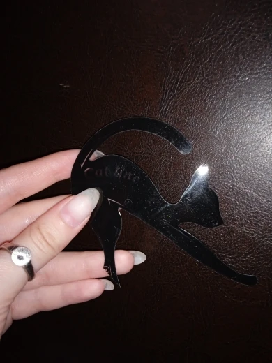 заказывая, думала, что кошечки будут из твердого пластика,а не просто гнущиеся "бумажки". так что стоит лучше изучать всем описание. но это можно не считать минусом, так как это просто моя невнимательность. больше меня разочаровало то, что они пришли покоцанные.и у каждой кошечки отсутствует какая-то часть, будто срезано специально. на первом фото можно увидеть,что срезана лапка, на второй хвост. части стали островаты,и при неаккуратности можно уколоть себе что-нибудь. также это и повлияло на сам функционал, так как теперь эти части не приложить и не сделать макияж. мне кажется продавец должен был увидеть,что отправляет, ведь это можно считать некачественным товаром.
