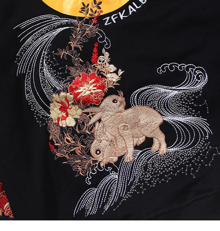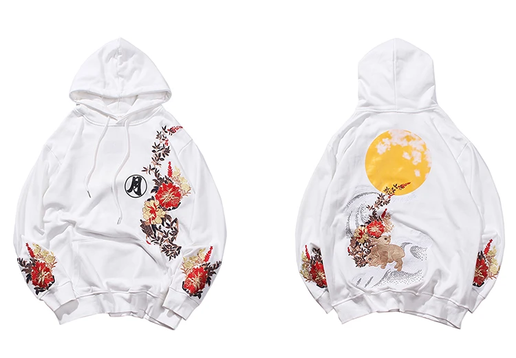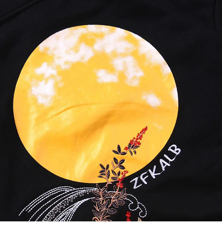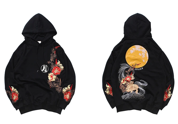 LENSTID 2019 осень новый мужской хип хоп Вышитый цветочный полнолуние пуловер с кроликом толстовки Harajuku Уличная свитер хипстер
