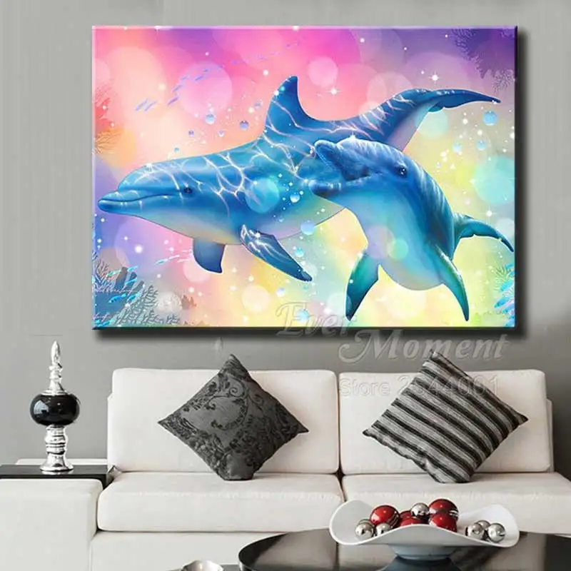 Алмазная живопись с голубым дельфином Ever Instant, полноразмерная мозаика, картина стразы, алмазная вышивка крестиком ASF1745
