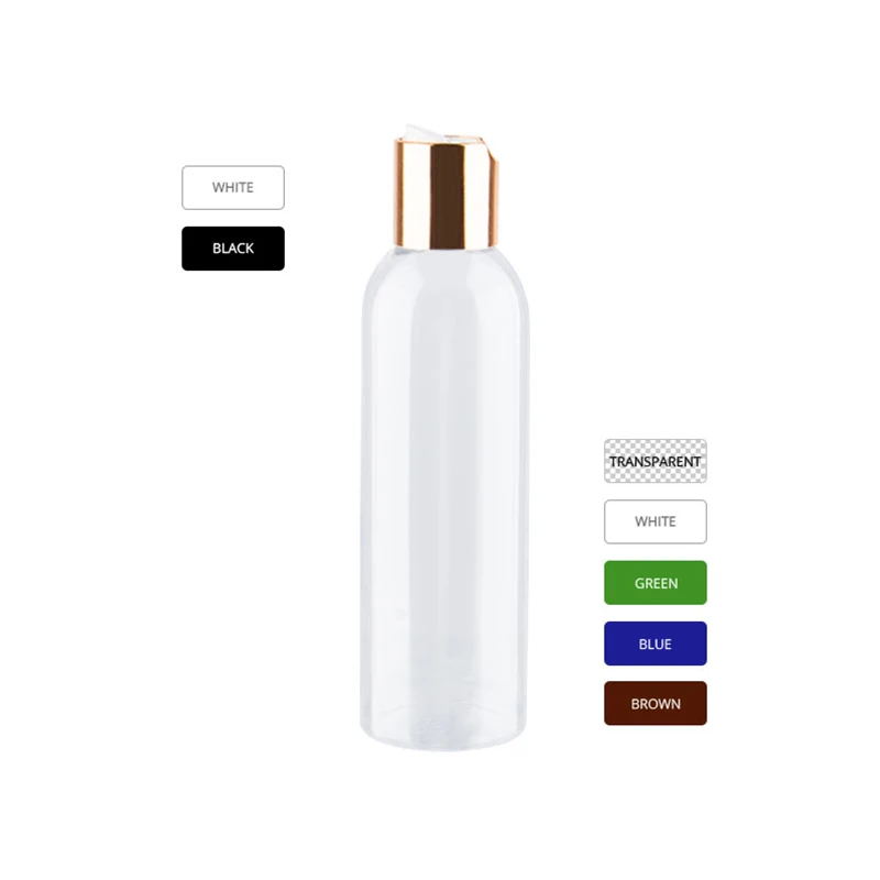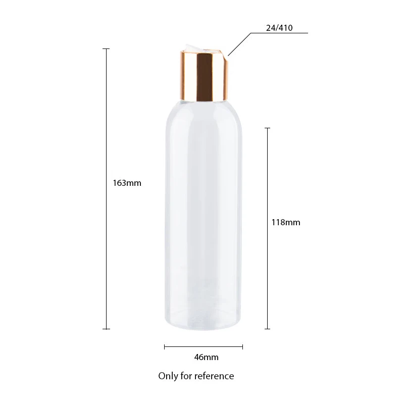Емкость: 200 мл Размер: 46x163mm Материал: ПЭТ + пластик-алюминий Цвет: прозрачный/белый/зеленый/синий/коричневый/черный флакон + золотой белый/золотой черный диск верхняя крышка