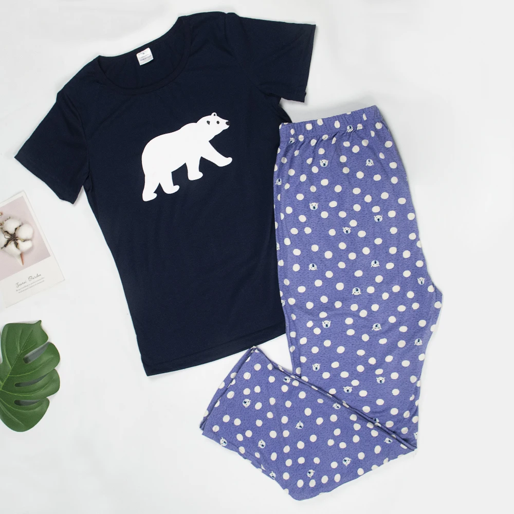 2020 пижамный комплект женские свободные пижамы короткий рукав + длинные брюки летняя одежда для сна Хлопковая женская домашняя одежда для отдыха с героями мультфильмов