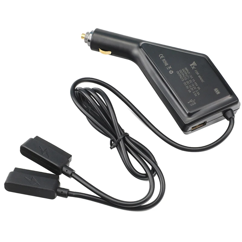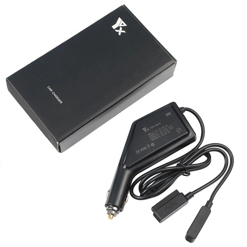 3в1 автомобильное зарядное устройство для MAVIC PRO PlatinumПротивоскользящий дизайн более удобный в использованииБольшой ток 5A для быстрой зарядки, около 90 мин для полной зарядки аккумулятораС usb-портом для контроллера, смартфона или планшетаПримечание: незапуск транспортного средства может привести к поломке зарядки. Запуск транспортного средства может обеспечить достаточное напряжение зарядки. ПараметрыДля аккумулятора: 13,2 В 2.5A * 2Для usb-порта: 5 В/2 АВес нетто: 105 гВес с посылка: 128 гПримечание: посылка включает только автомобильное зарядное устройство.