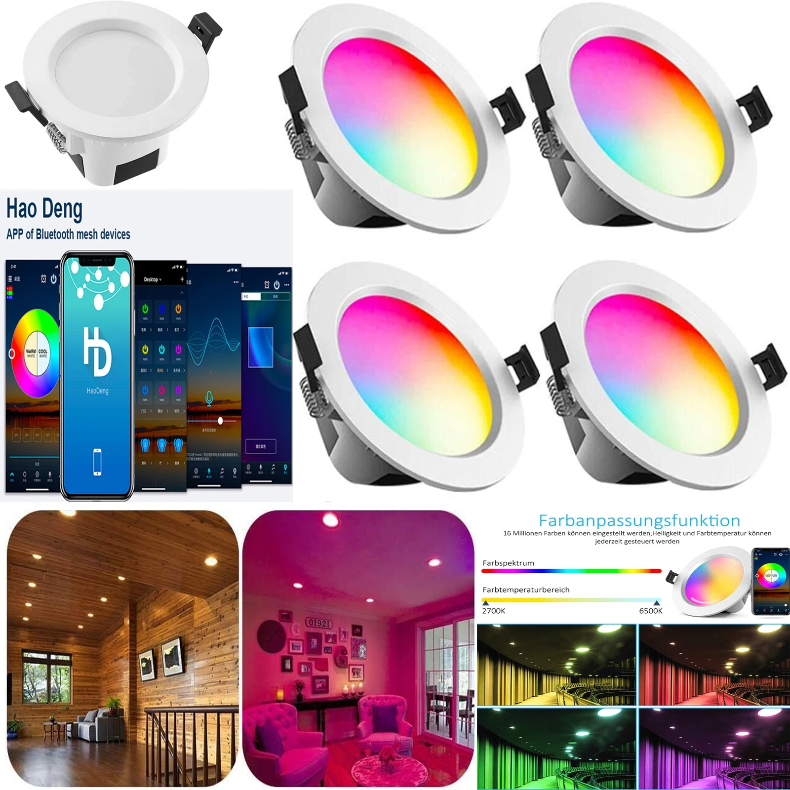 ParticularitiesDimmable, Color change, RGB, Warm white ,Cold white.No waterproof