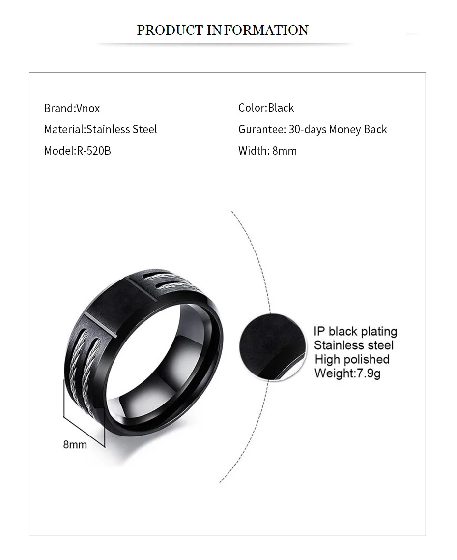Классические мужские кольца Vnox, браслет из нержавеющей стали 8 мм...