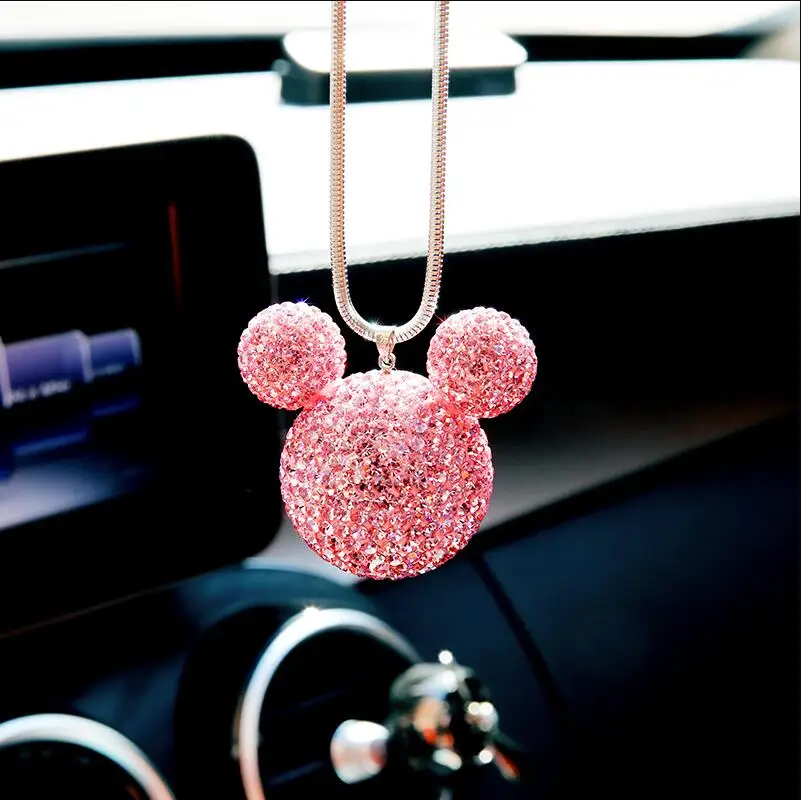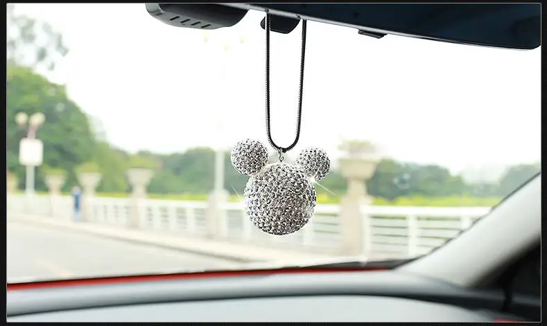 Стразы, хрустальный шар, автомобильный кулон, милый мультфильм, шикарное Автомобильное Зеркало, Висячие аксессуары для девочек, женское украшение для интерьера автомобиля