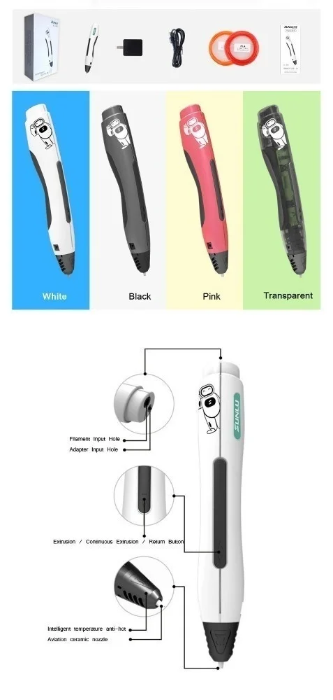 3D Pen color option3D Drawing Pen Black/White/Pink/Transparent