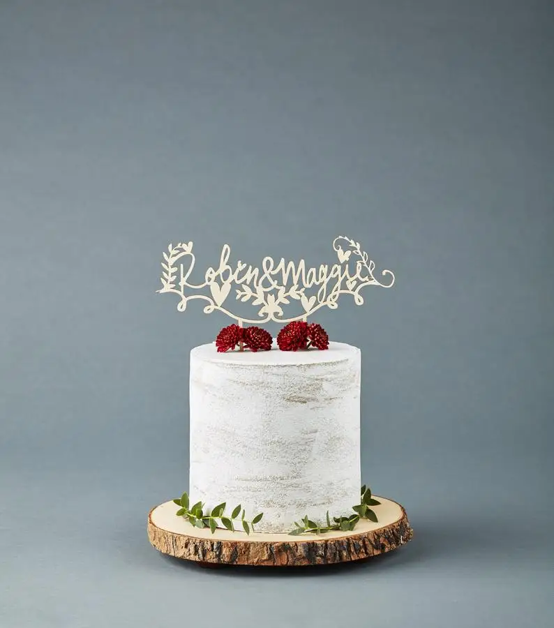 Персонализированные названия деревянные топперы на свадебный торт s-Пользовательские свадебный торт Топпер-деревенский деревянный Lasercut березовые топперы на свадебный торт D