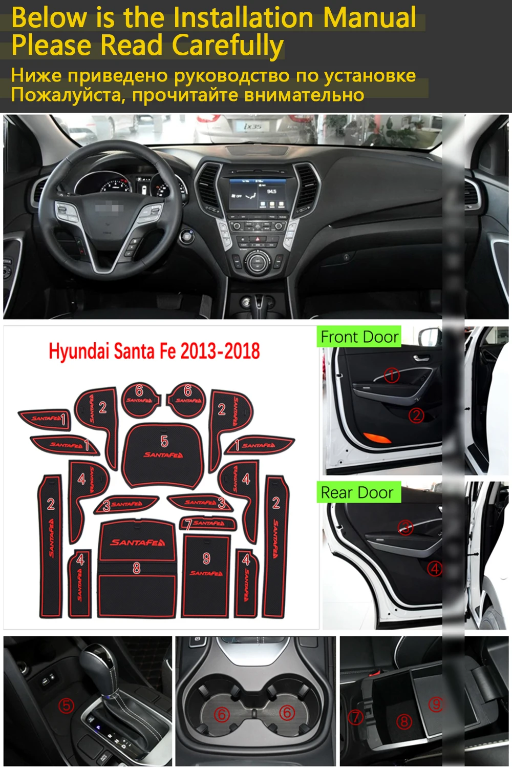 Противоскользящая резиновая подушка для чашки, дверной паз, коврик для Hyundai Santa Fe DM Maxcruz Grand SantaFe ix45 2013 2018 2015 2017 аксессуары
