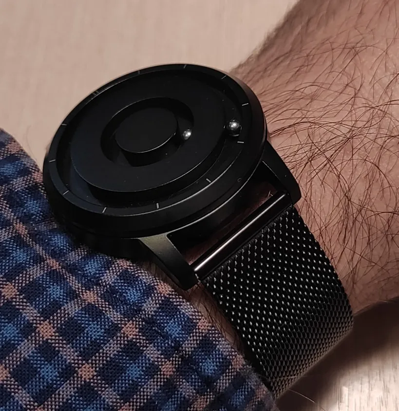 В целом выглядят недорого, грубовато. Корпус толстоват. Ремешок - дешёвый пластик. Шарик по наружному диаметру плохо фиксировался, постоянно слетал с магнита при движении руки. Пришлось вскрыть корпус и подогнать стрелку с магнитом. Теперь всё ок.