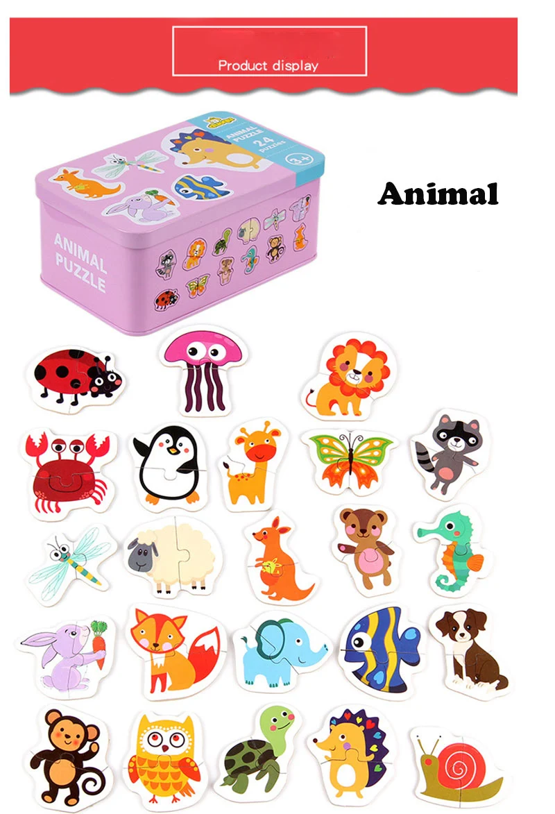 Железная коробка деревянная карта автомобиль фрукты животные 3D игра-головоломка игрушки