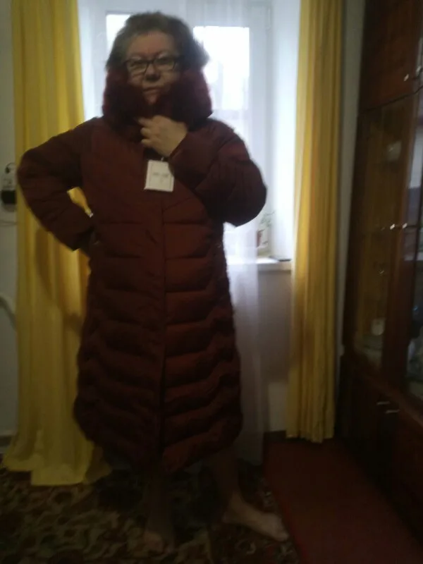 Заказала 11.11, за 3300 руб, доставка 2 недели в Ростов-на-Дону. Теплое пальто, не уверена про -20, но -10 выдержит точно, а потом и свитерок потеплее можно поддеть (размер позволяет). На русский 48 взяла 2ХL, получилось свободно. На рост 166 на ладонь ниже колена. Змейка в обе стороны. Карманы тоже на змейке. Рукава на манжете, чтоб не задувало. Качество хорошее, но на кармане торчали нитки (на фото). Мех искусственный, выглядит нормально (на натуральный не похож, но пушистый), лежал отдельно, пристегнула на пуговицы. Видимо, универсальный, на разные модели курток, т.к на мехе пуговицы в 2 ряда, а на капюшоне в 1. Цвет немного отличается от фото, более коричневый, но на моих фото выглядит, как на сайте. В принципе, покупкой довольна. Носить буду