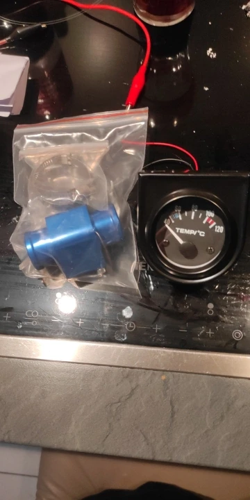 Полностью красивый измеритель температуры воды в комплекте с адаптером, датчиком и хомутом шланга. Комплект супер.