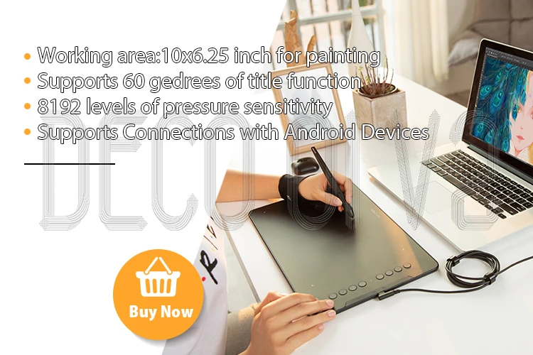 я пока-что так себе художник, но планшет классный, хорошая чувствительность, он правда большой почти как моя клавиатура, перо довольно широкое но в целом удобное, кнопки настраиваемые но работают в разных приложениях по разному(в основном бесполезные). мне пришла версия планшета Deco 01 V2, в Самару за 12 дней из России довольно долго (но наверное из-за 11.11). К телефону подключать не пробовал, но вроде должен работать, в комплекте не было кабеля или переходника для телефона.