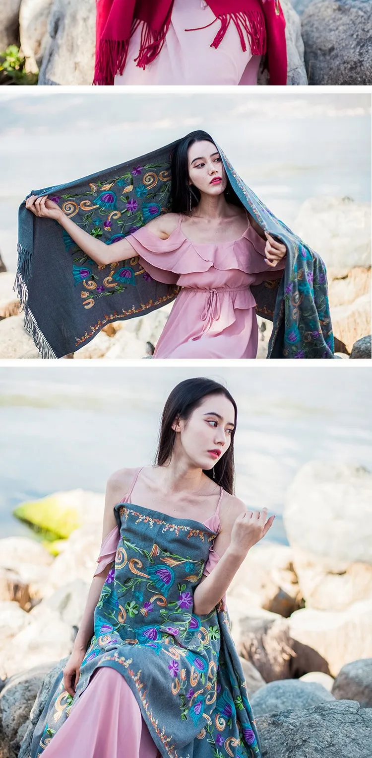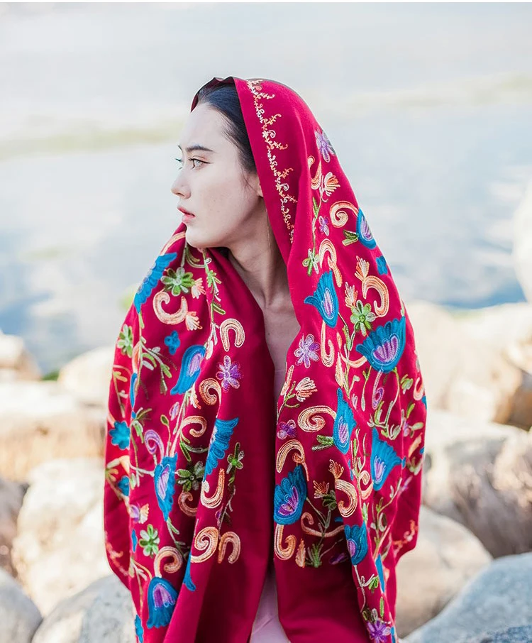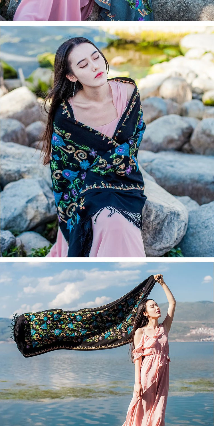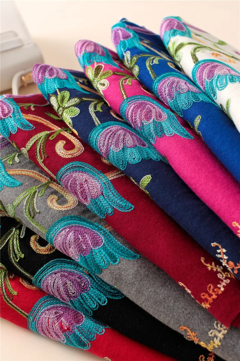 2019 дизайнерские качественные кашемировые шарфы с вышивкой, винтажный зимний женский шарф, длинные шали и палантины, Женский мягкий теплый платок