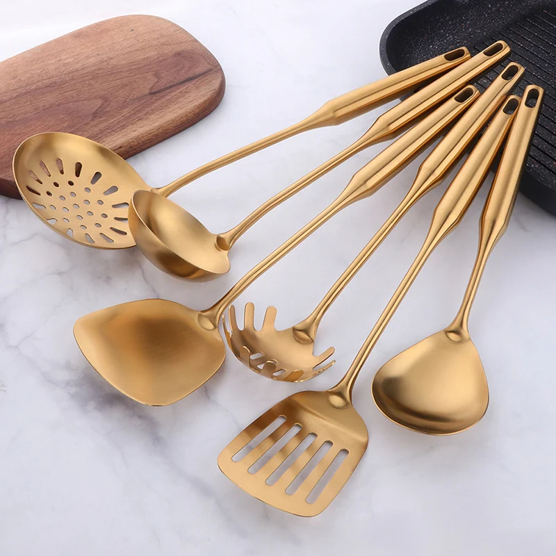 Набор позолоченной кухонной посуды из нержавеющей стали, длинная ручка, металлический Полировочный токарь с прорезями, кухонные принадлежности, 1 шт.