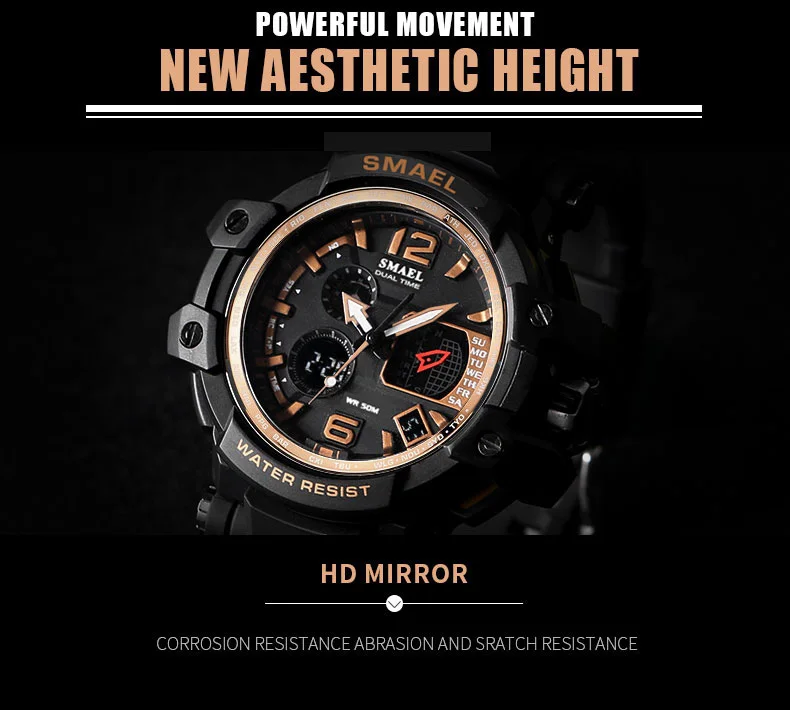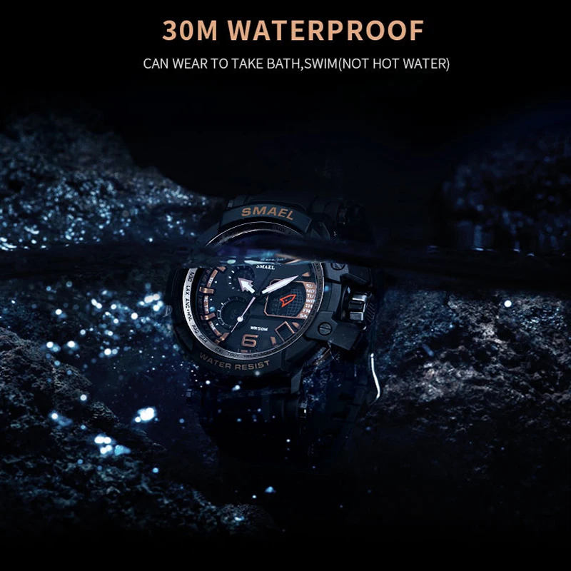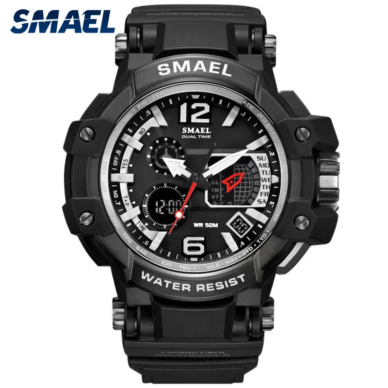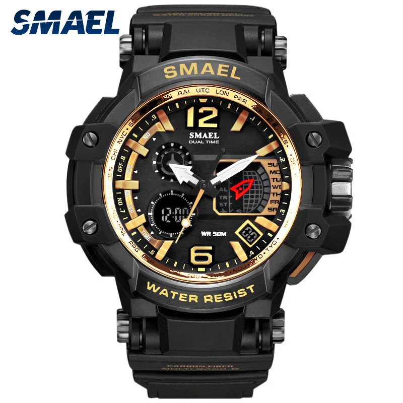 Мужские спортивные часы SMAEL 2020 с двойным дисплеем, хронографом, будильником, аналоговые кварцевые наручные часы, мужские водонепроницаемые военные часы 1509