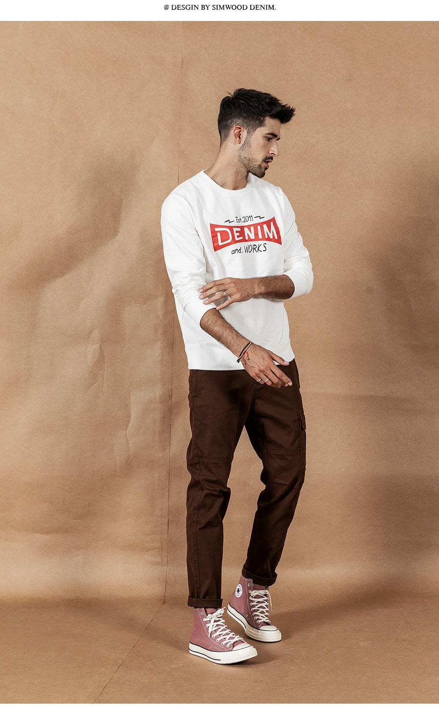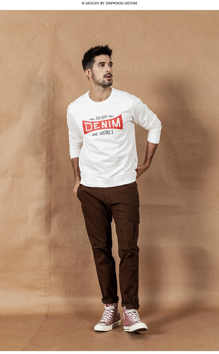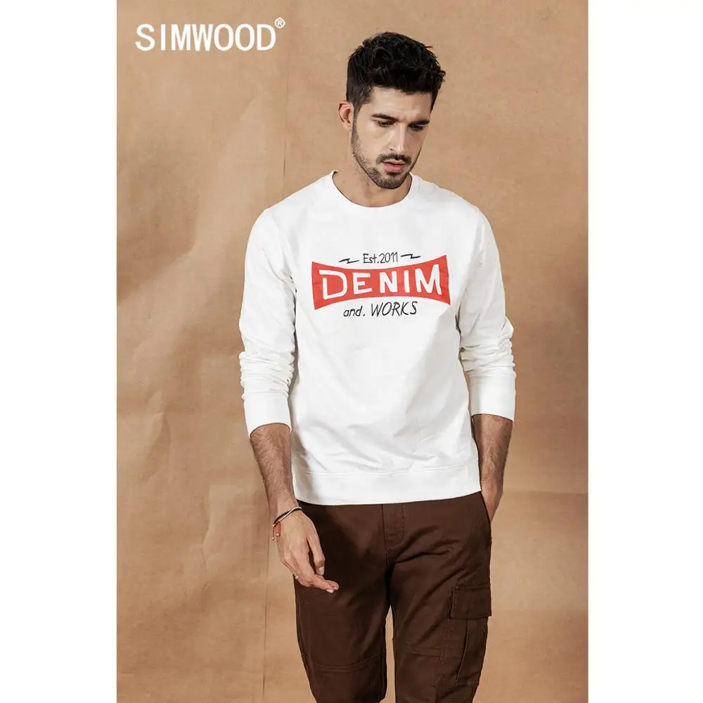 Мужское худи с надписью SIMWOOD, модный повседневный свитшот с круглым вырезом, новая модель 190467 большого размера на осень и зиму, 2019