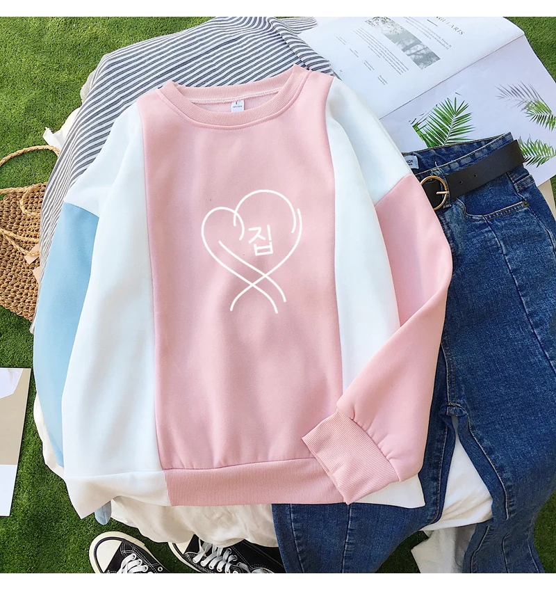 Худи с принтом в виде карты души, свитшот, Женский флисовый Повседневный пуловер в стиле Харадзюку, милый лоскутный топ с принтом в виде сердечек и цветных блоков