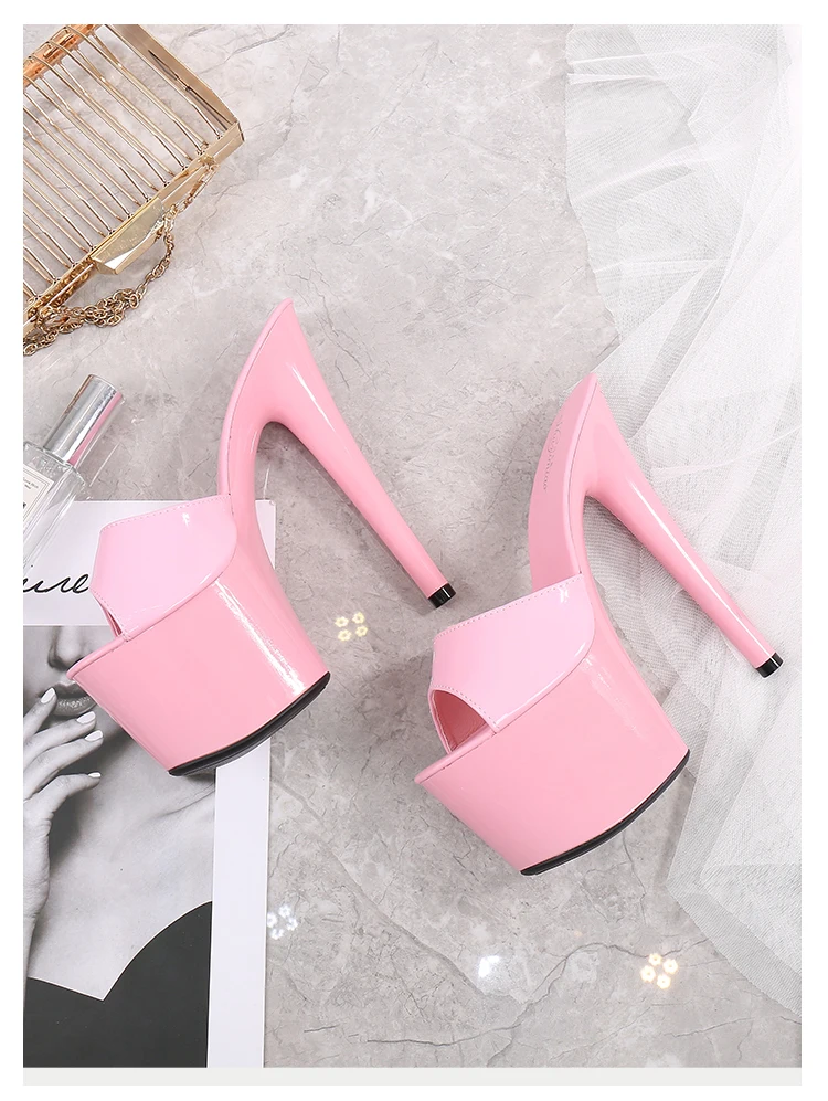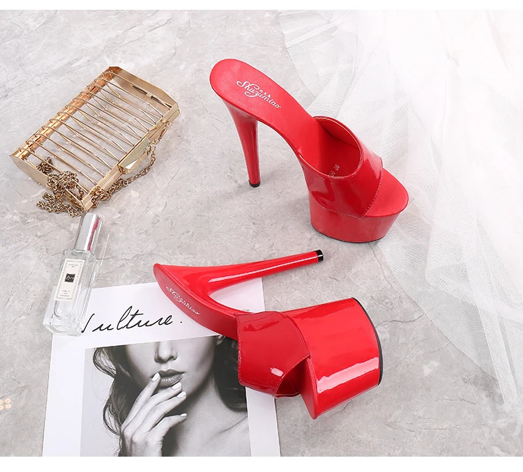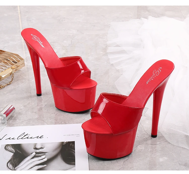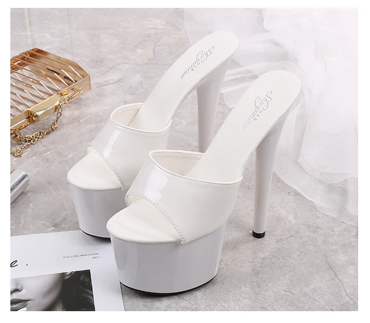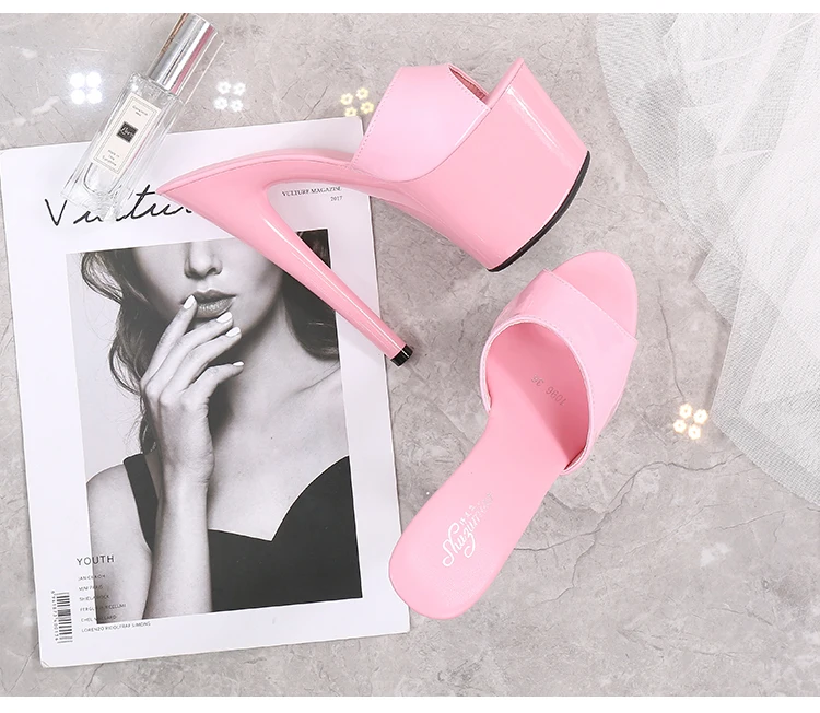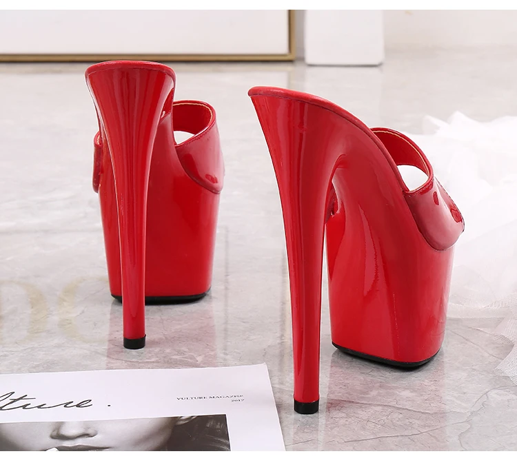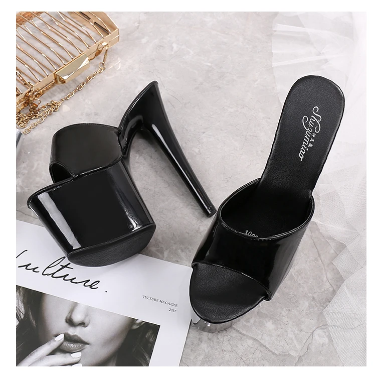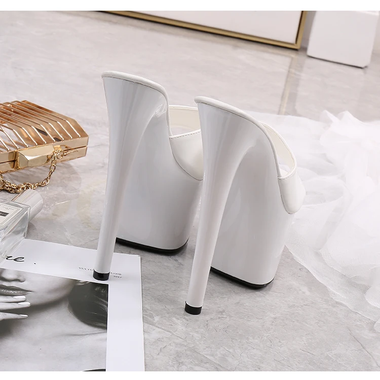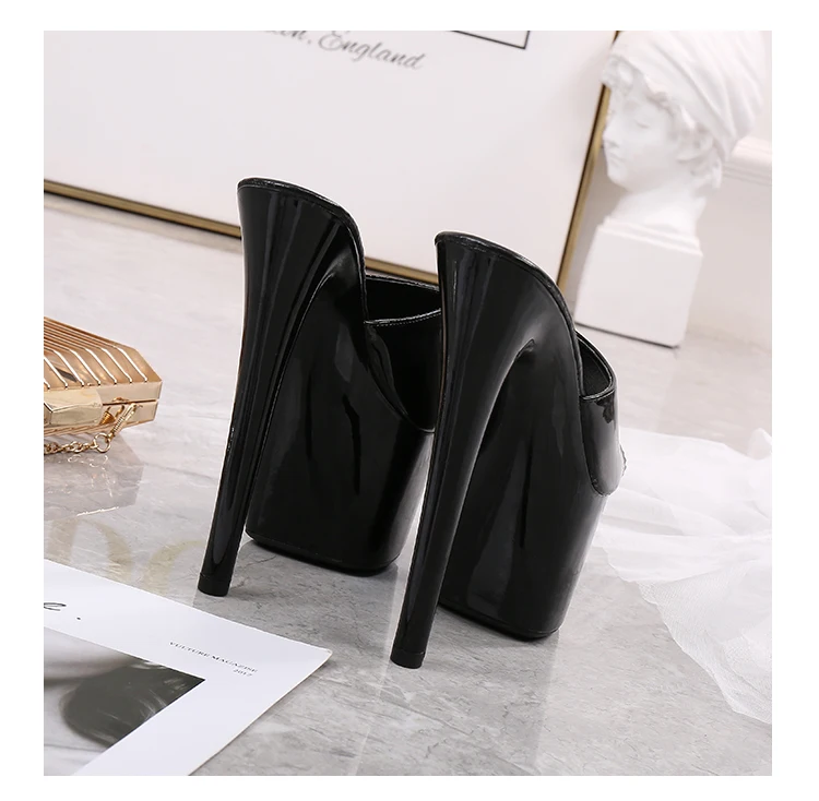 Шлепанцы из искусственной лакированной кожи на очень высоком каблуке 17 см; Женская обувь на тонком каблуке; Новинка 2019 года; Большие размеры