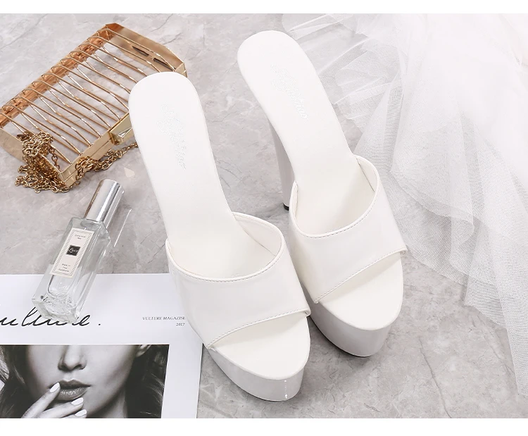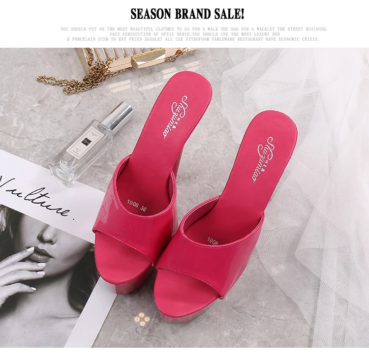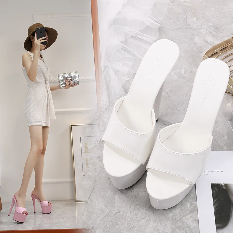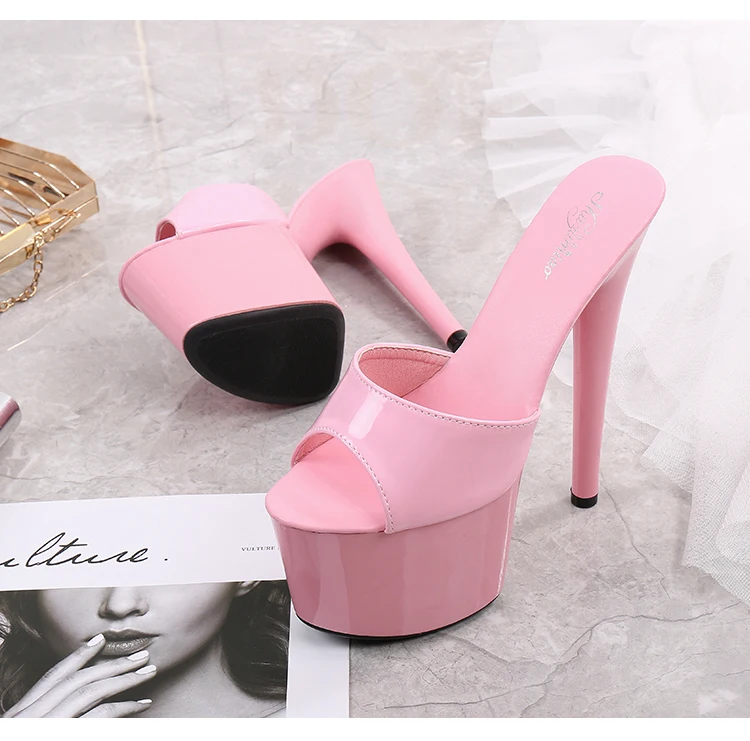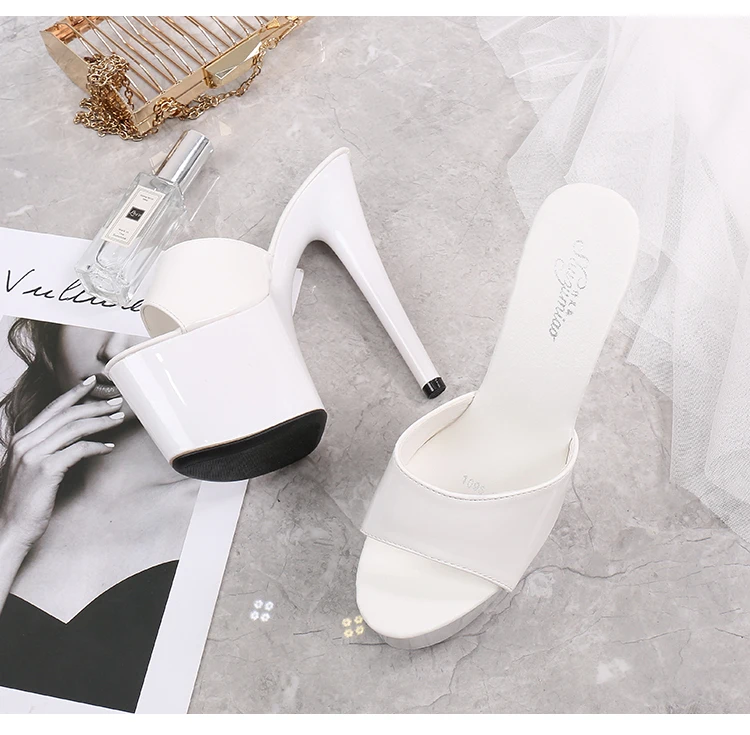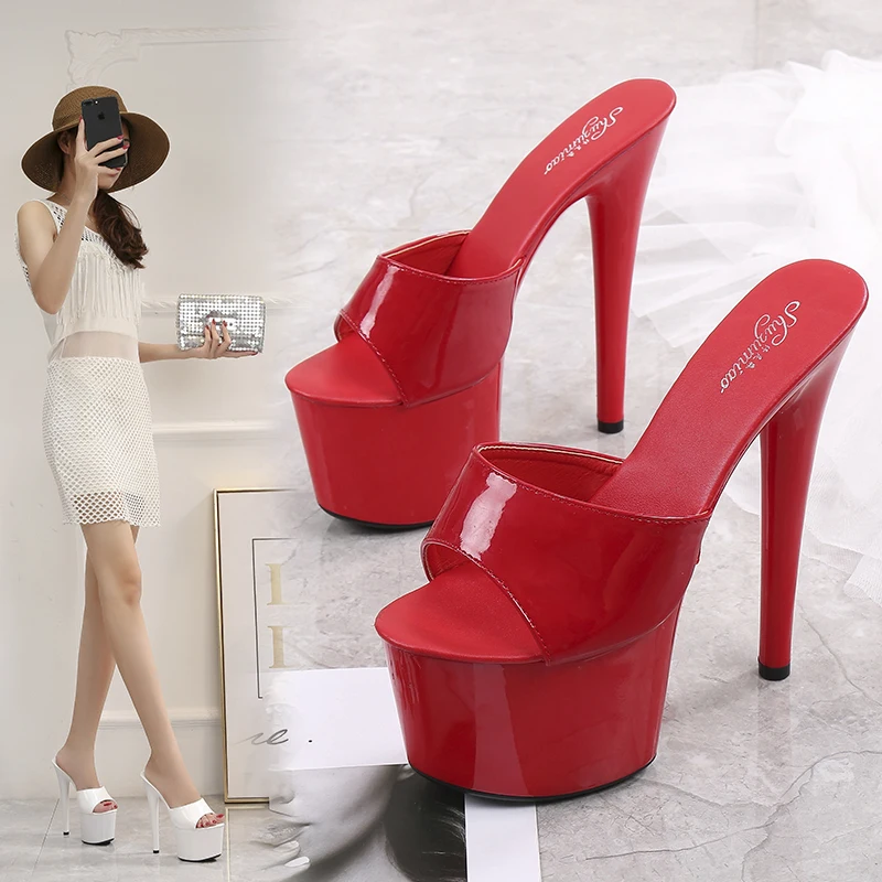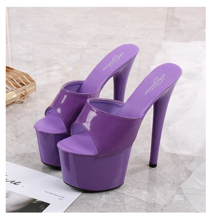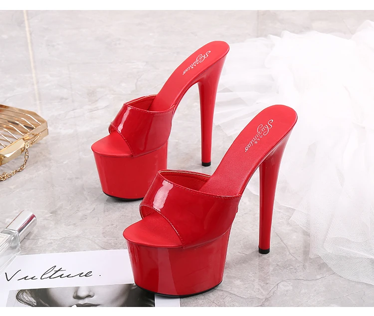 Шлепанцы из искусственной лакированной кожи на очень высоком каблуке 17 см; Женская обувь на тонком каблуке; Новинка 2019 года; Большие размеры