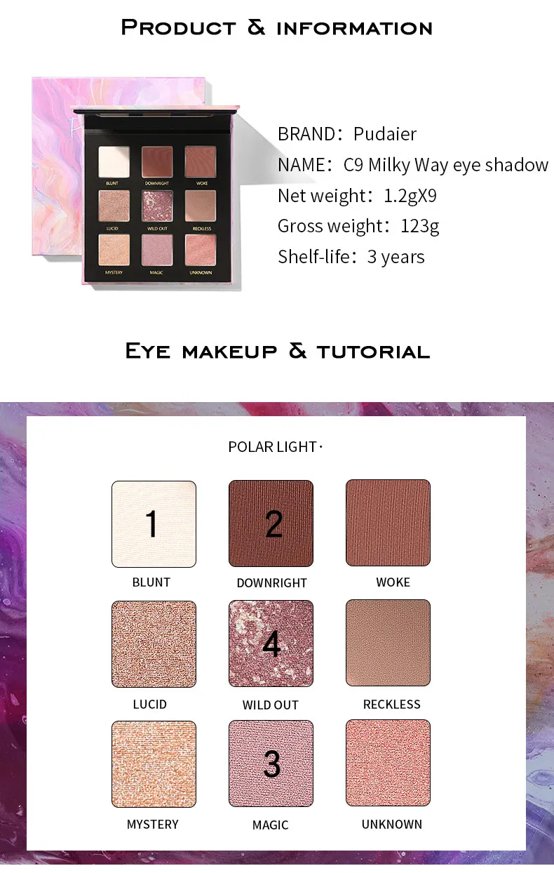Палетка теней для век Pudaier, 9 цветов, закат, полярсветильник свет, Млечный путь, профессиональная Палетка теней для глаз с матовыми блестками