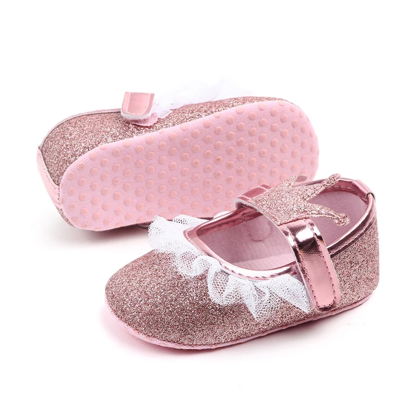 Туфли с блестками для маленьких девочек; Кружевные туфли с короной для маленьких принцесс; Мокасины; Первые шаги г.; Сезон весна-лето; Обувь на мягкой подошве