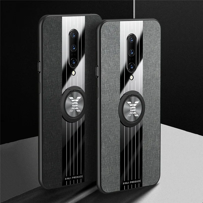Чехол для OnePlus 7 Pro, Роскошный Жесткий тканевый чехол с кольцом...