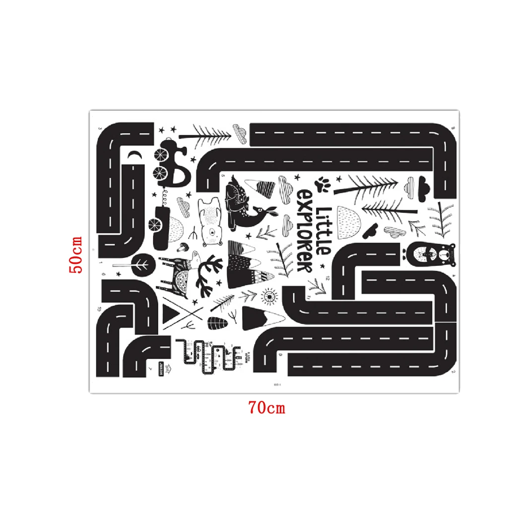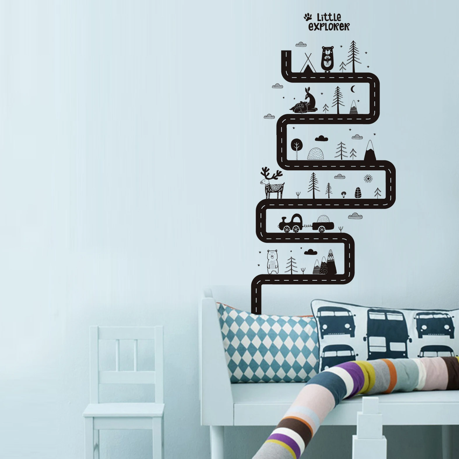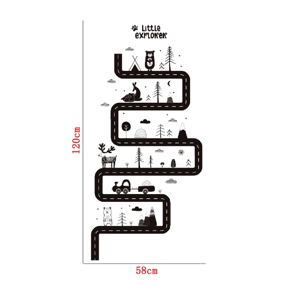 Мультяшные дорожные автомобильные лесные животные креативные черные настенные наклейки с видом на дорогу дерево Медведь Олень декор для детской комнаты съемные наклейки