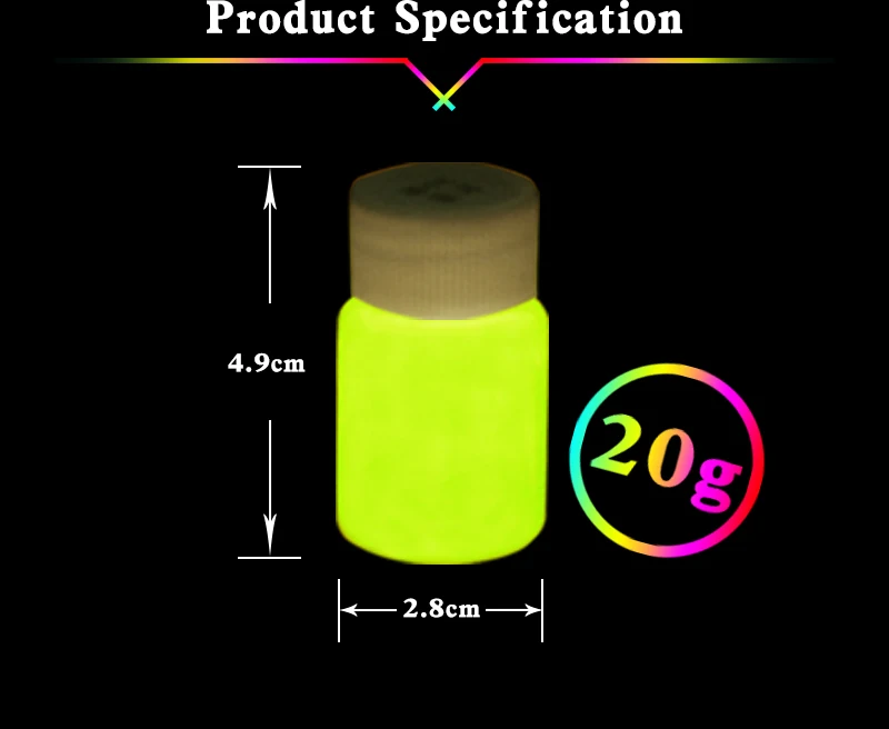 Использование:20 г в бутылке желтый цвет светящаяся краска фосфоресцирующий Флуоресцентный порошок DIY вечерние креативные Светящиеся в темноте украшения для домаСветящаяся Краска в основном используется для строительства, украшения, рекламы, дорожных знаков, искусственных ландшафтов, а также может использоваться как светящаяся табличка для отелей, торговых центров и особых случаев, А также для аварийного освещения низкого уровня.