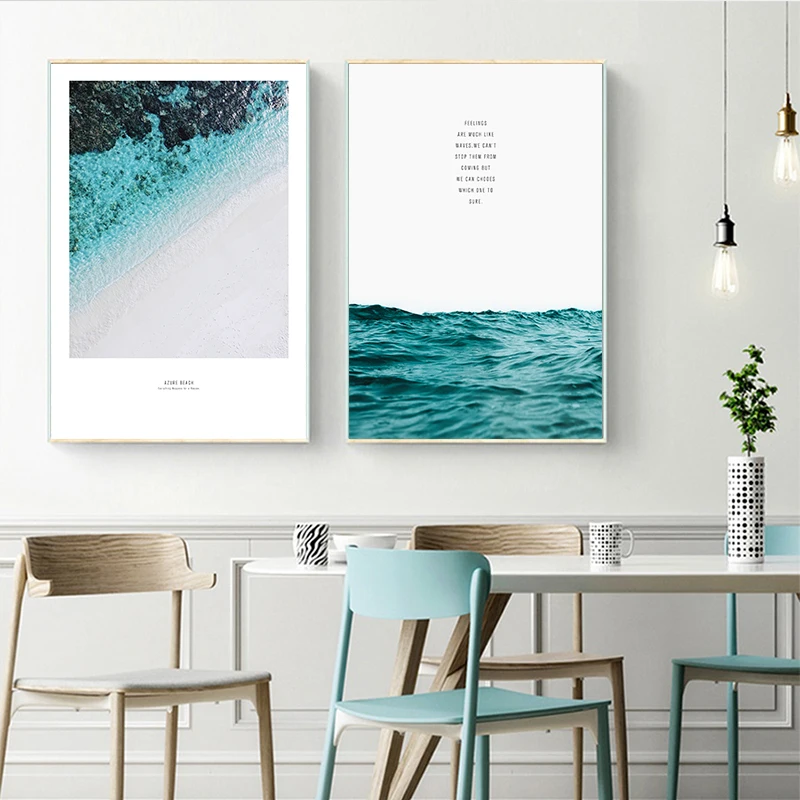 Скандинавский тропический океан волны Холст настенный художественный плакат скандинавский пейзаж печатная Живопись украшения картины Современный домашний декор