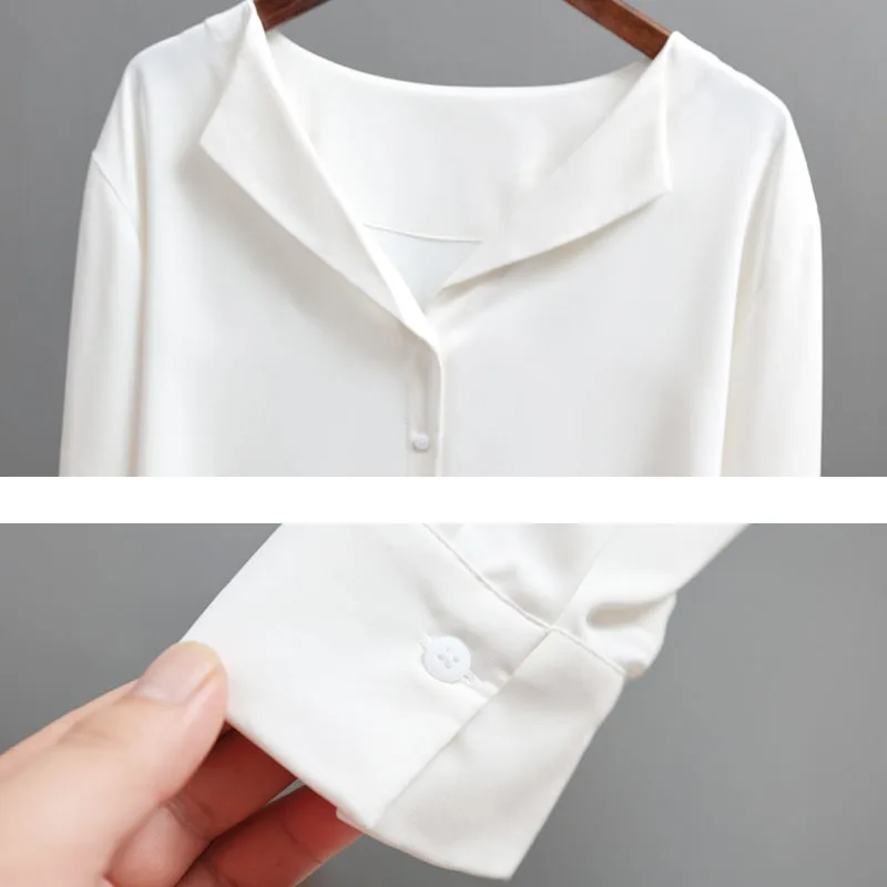Женская шифоновая блузка, повседневная однотонная блузка на пуговиц...