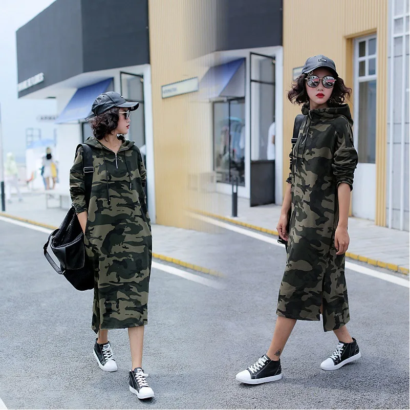 Весенние женские хлопковые пуловеры с камуфляжным принтом, свитшот с капюшоном и длинным рукавом, длинный Повседневный свитшот, весна 2022, QYF075