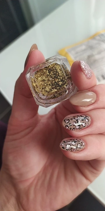 Красивейшая поталь , стоит в 2 раза меньше чем в спец.магазинах, а качеством никак не отличается. Ничего не просыпалось , буду заказывать ещё