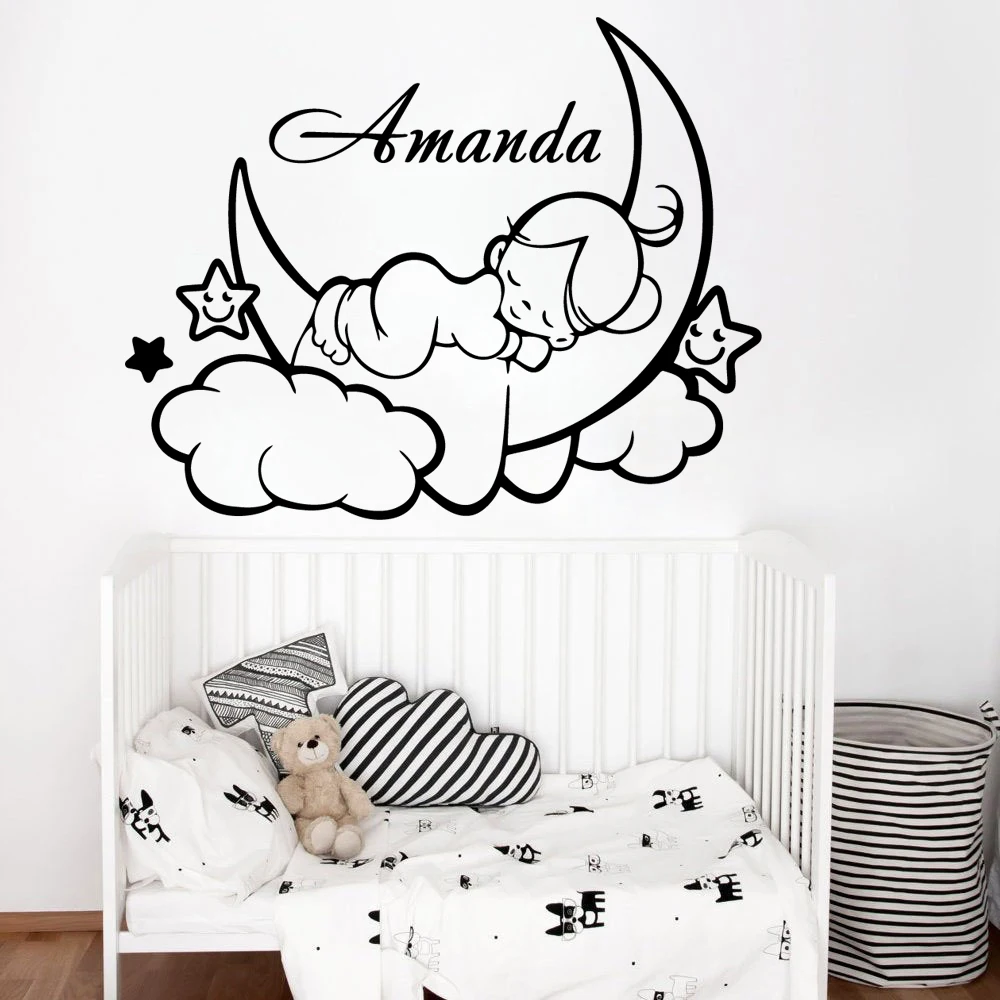 Виниловые самоклеющиеся виниловые обои с изображением маленького ангела, Луны, облаков для детских комнат