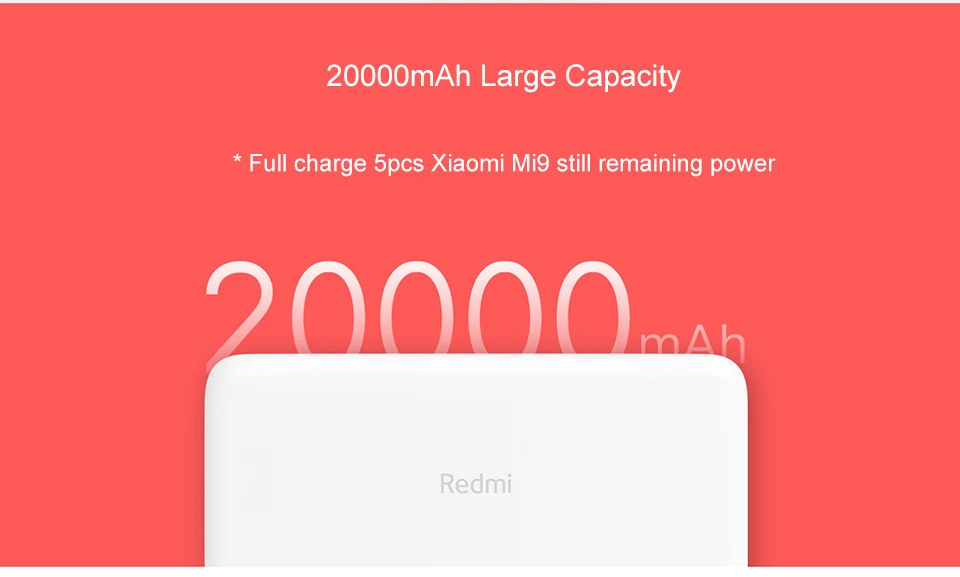 Особенности:-Литий-полимерная батарея высокой плотности 20000 мАч, совместима с несколькими основными телефонами и другими смарт-устройствами.-Выход с двумя USB-A: Зарядка для двух устройств, макс. 9V-2A, макс. 12V-1.5A-Два входных порта: Micro USB + USB-C-9-слой защиты микросхем гарантия безопасной зарядки и повысить эффективность зарядки.-Портативное использование, светодиодный светильник, портативный карманный вентилятор и многое другое.Описание:Продукт: Redmi 20000mAh внешний аккумуляторТип батареи: литий-ионный полимерный аккумуляторЭнергия батареи: 74Wh 3,7 V 20000mAhНоминальная Ёмкость: 12000 мАч (5,1 V/3.6A)Входной интерфейс: Micro-USB/USB-CВход: Micro/USB-C: 5 в 2,1 А, 9 в 2,1 А, 12 В 1,5aВыход: 9V 2A MAX, 12V 1.5A MAXВыходной интерфейс: 2xUSB-AРазмер изделия: 154*73,6*27,3 ммПосылка:1 * Redmi Power bank 20000 мАч