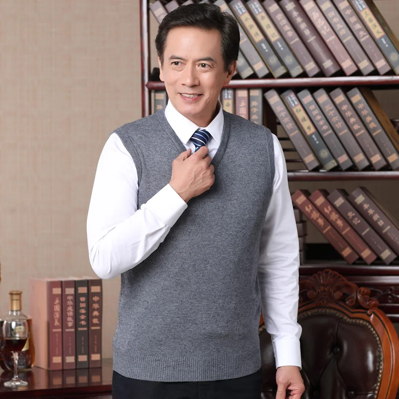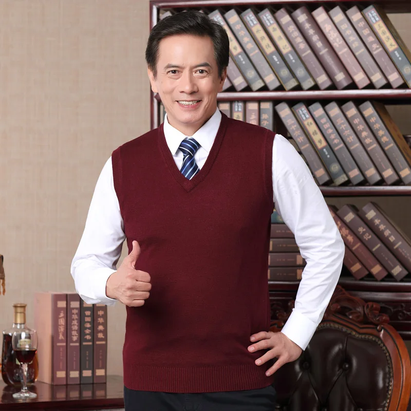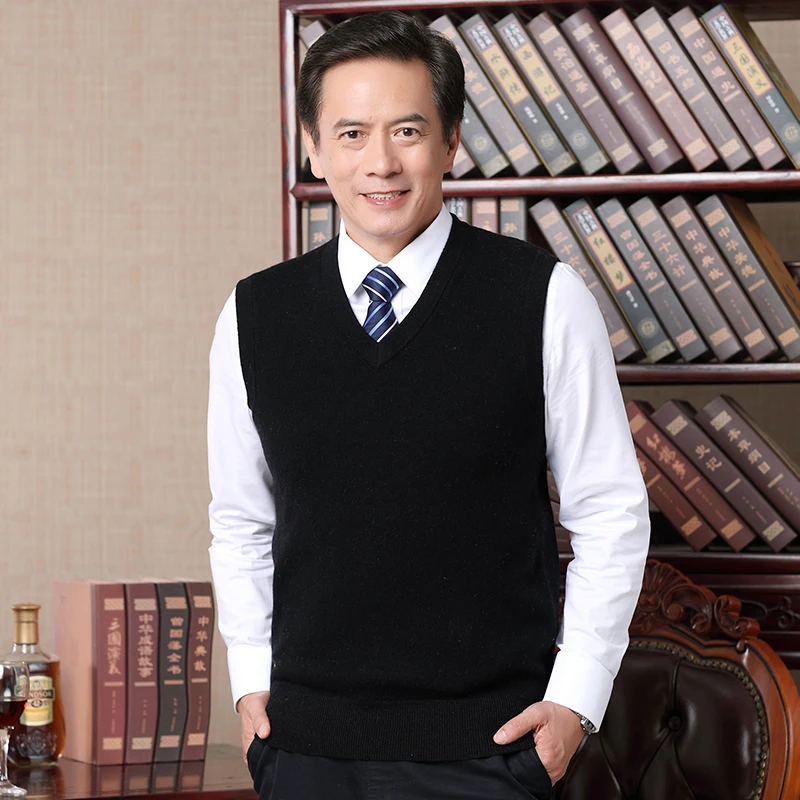 Новый мужской Однотонный свитер, осенний мужской шерстяной свитер без рукавов, пуловер, свитер, жилет, бесплатная доставка