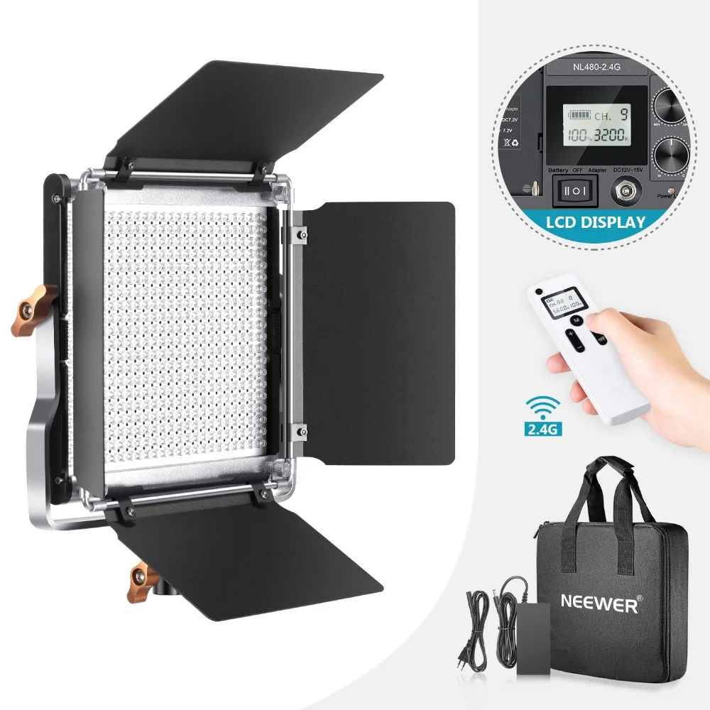 Светодиодный светильник Neewer Advanced 2,4G 480, двухцветная СВЕТОДИОДНАЯ панель с регулируемой яркостью + ЖК-экран и беспроводной пульт дистанционного управления 2,4G для портретной продукции