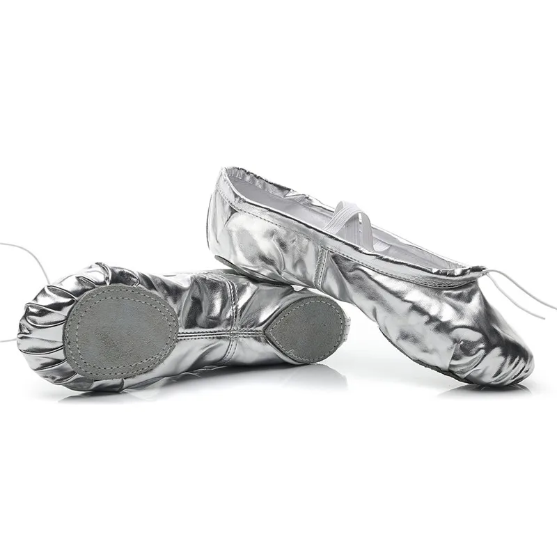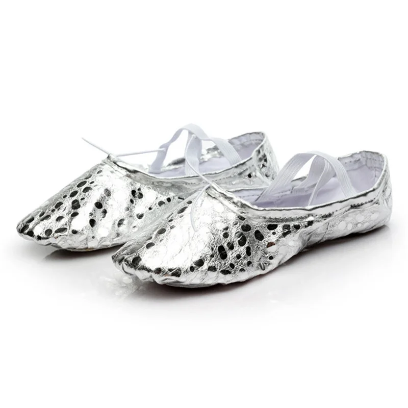 USHINE профессиональное качество PU Золото Серебро тренировочная боди-формирование тапочки для занятий йогой обувь Балет живота танцевальная обувь Дети Девушки женщина