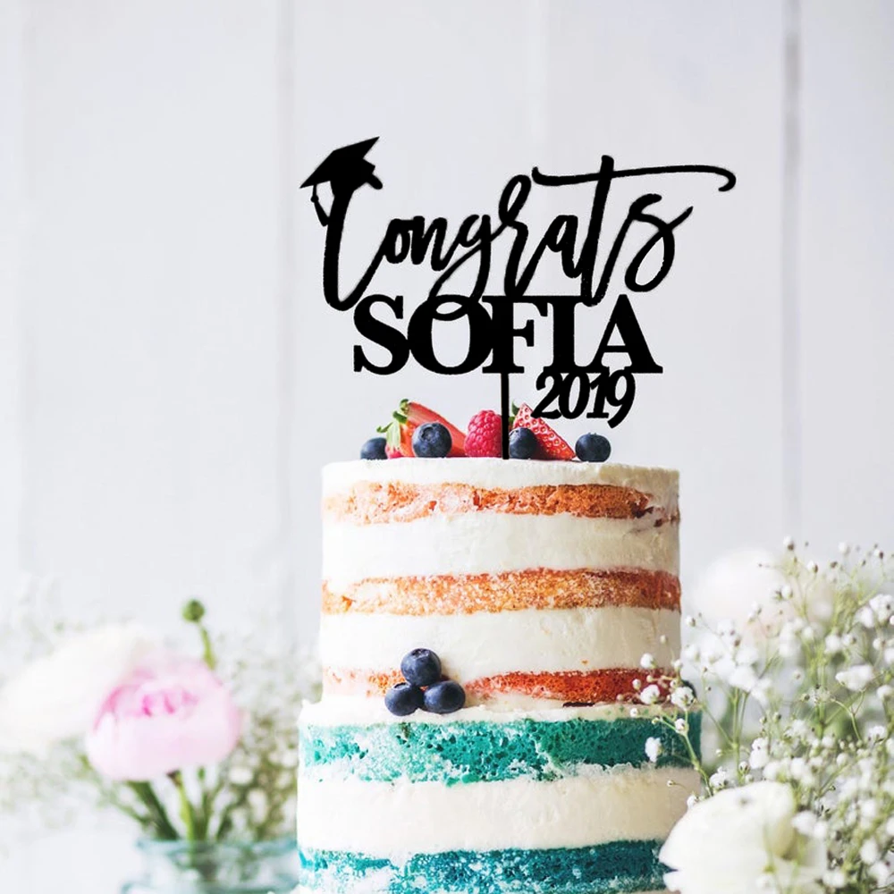 Индивидуальное имя и годы Выпускной торт Топпер выпускной украшение, персонализированные Золотые Зеркальные деревянные принадлежности