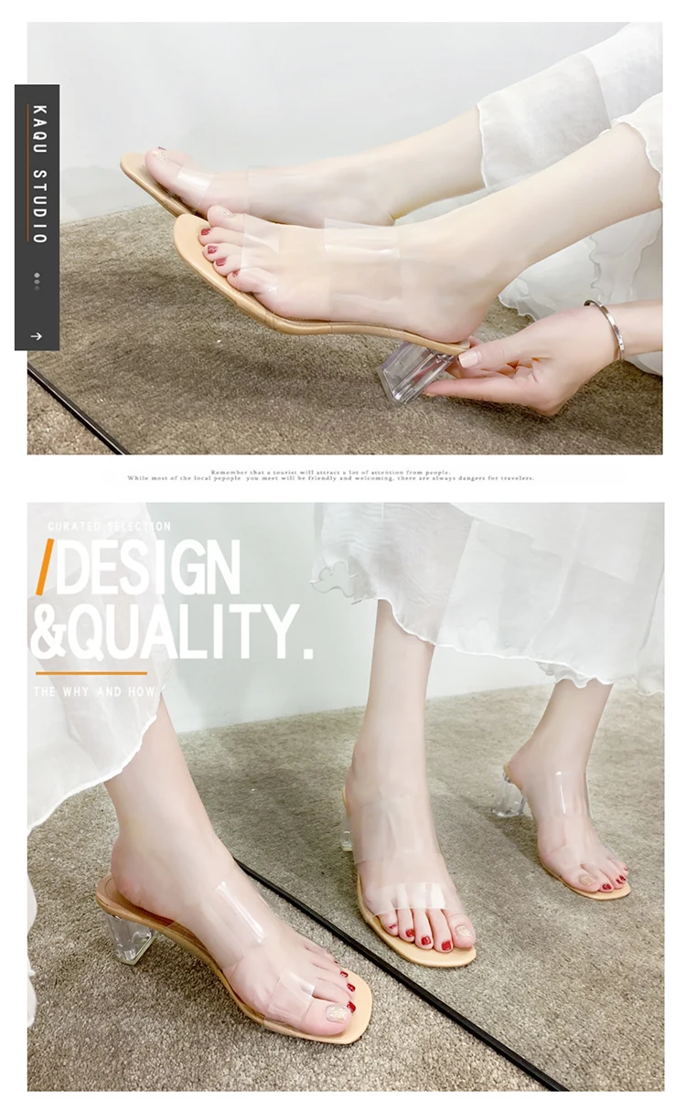 DiJiGirls 2021 популярные сандалии прозрачные ПВХ прозрачные тапочки кристалл 7 см и 10 см высокий каблук пляжные сандалии Повседневная летняя обувь