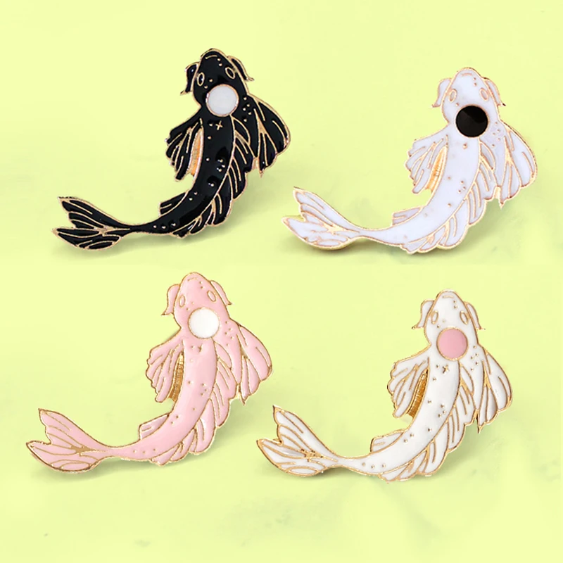 4 шт.компл. эмалированная булавка Lucky Koi, белая, розовая, черная...