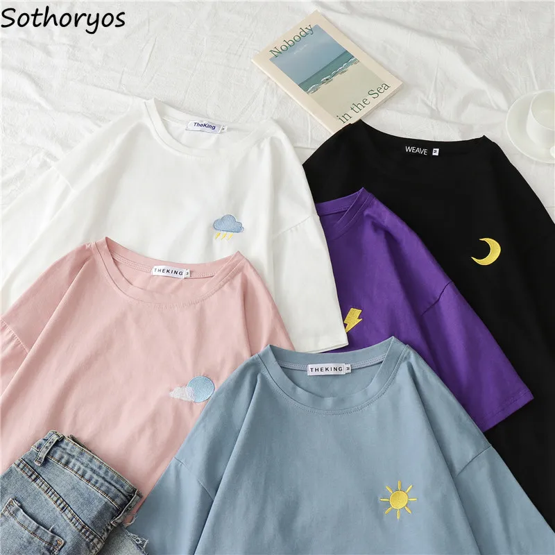 Футболки женские свободного покроя, универсальные Простые повседневные, с круглым вырезом и коротким рукавом, в Корейском стиле, для девушек, лето 2020