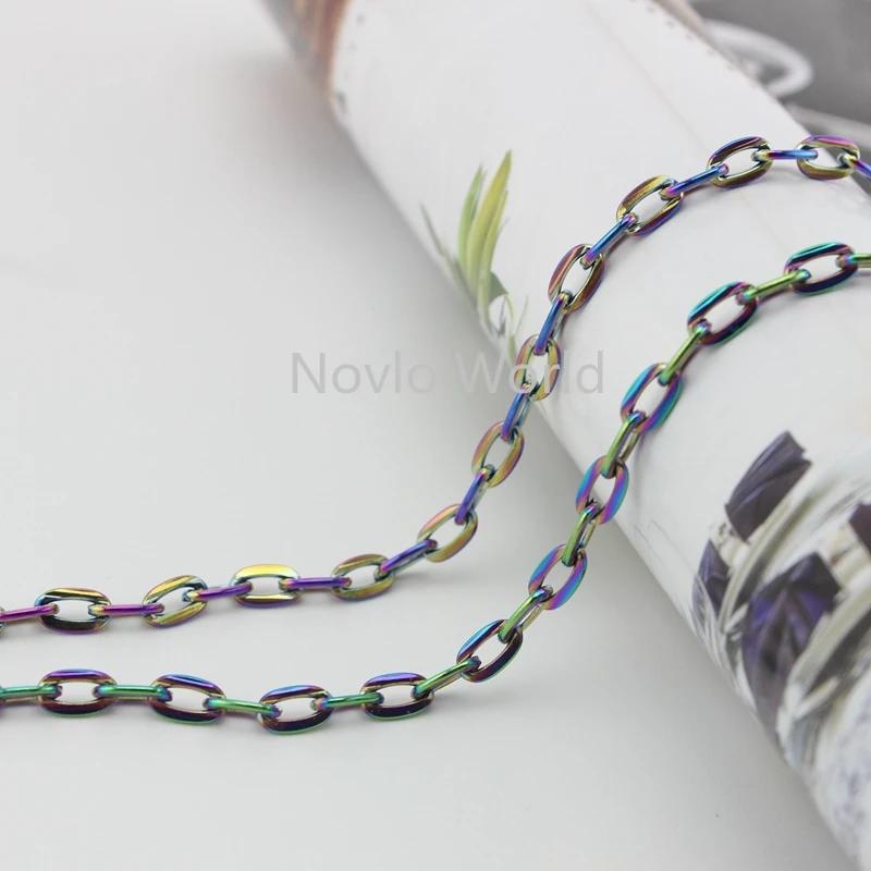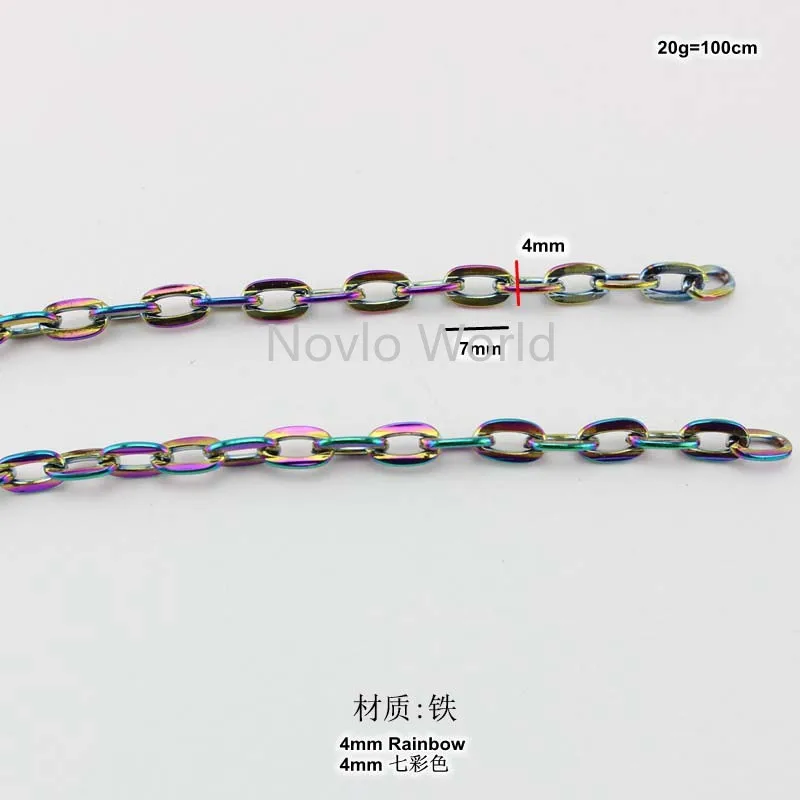 3 метра теста, ширина 4 мм, Высококачественная Радужная металлическая цепочка для сумок, сумка на плечо, цепочка для ручек, аксессуары
