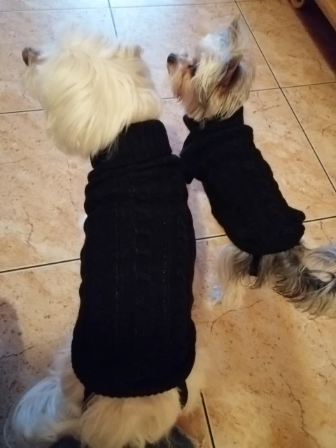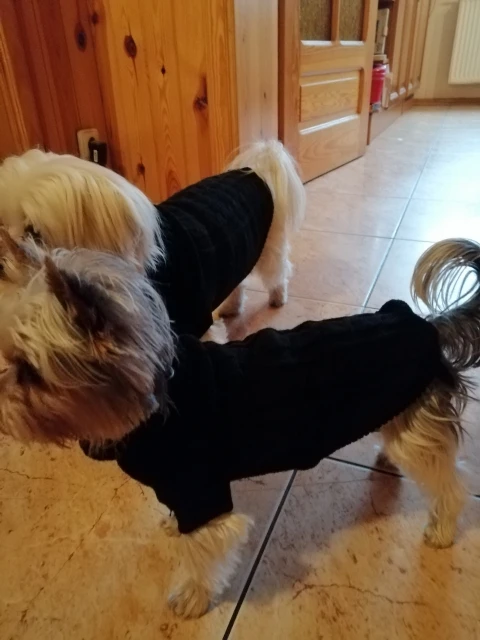 Красивые! Но нужно заказывать на размер больше, впритык с нашей кофтой размера М купленной в зоомагазине 4 лапы, на размер меньше.. на чихуахуа 2,4 кг.
