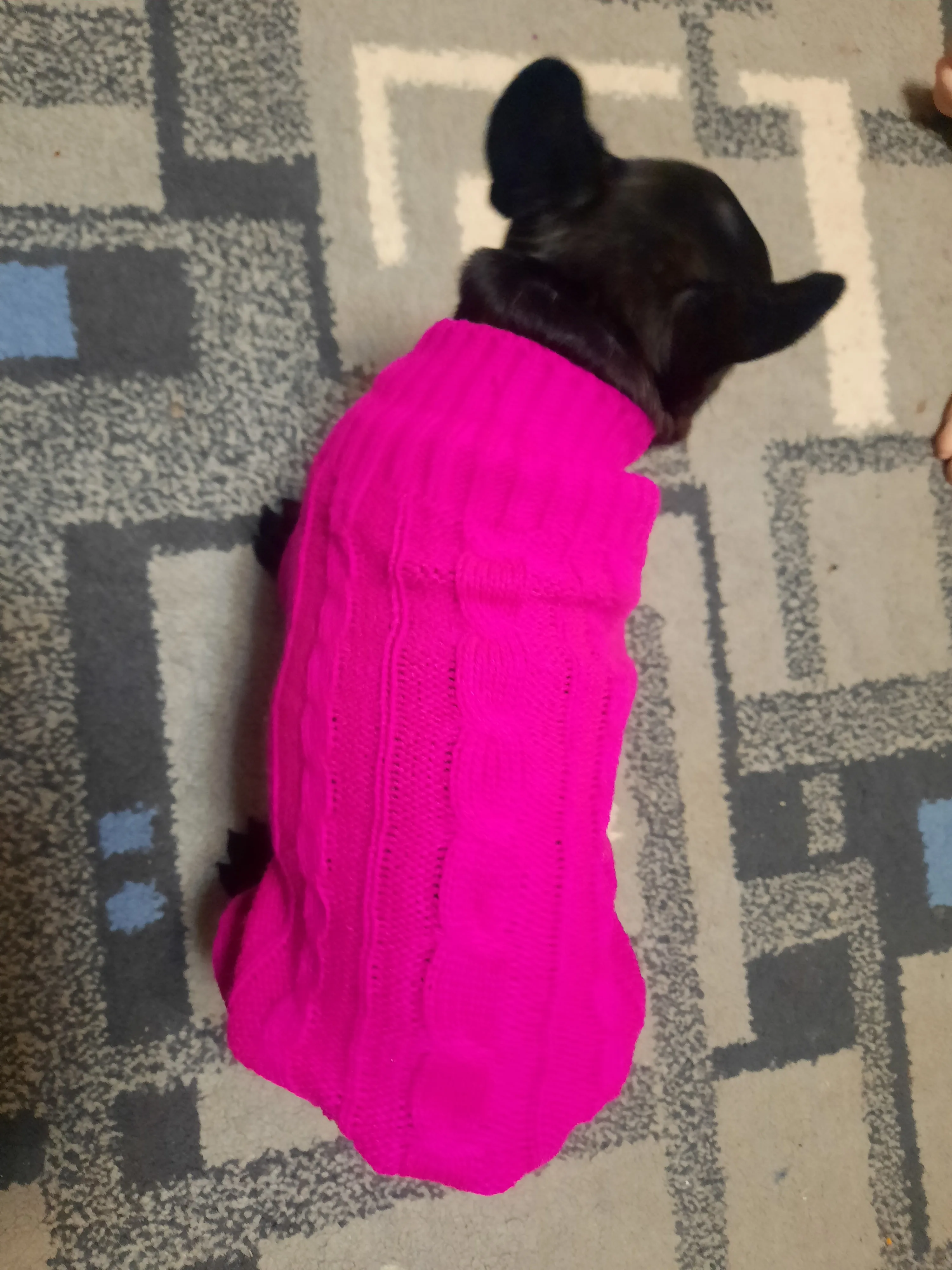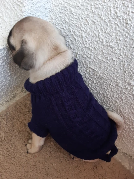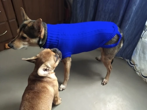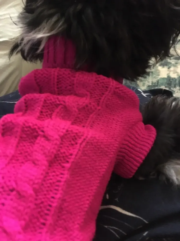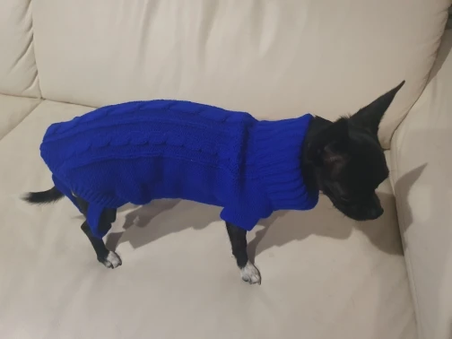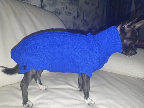 Красивый свитер в потрясающем цвете. Гр. XL подходит для моего Чихуахуа весом 3,4 кг с длиной спинки 30 см