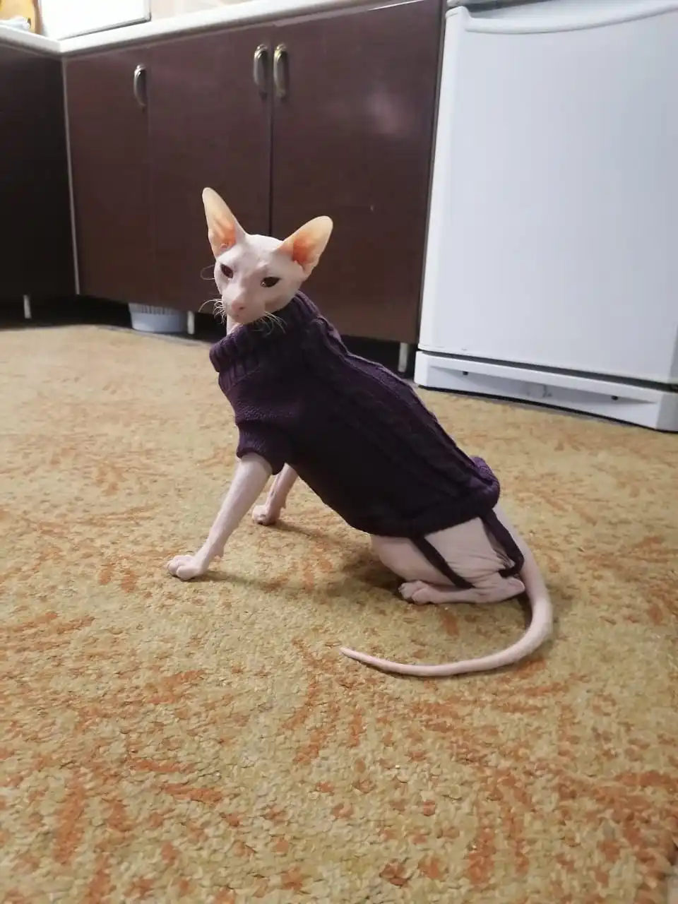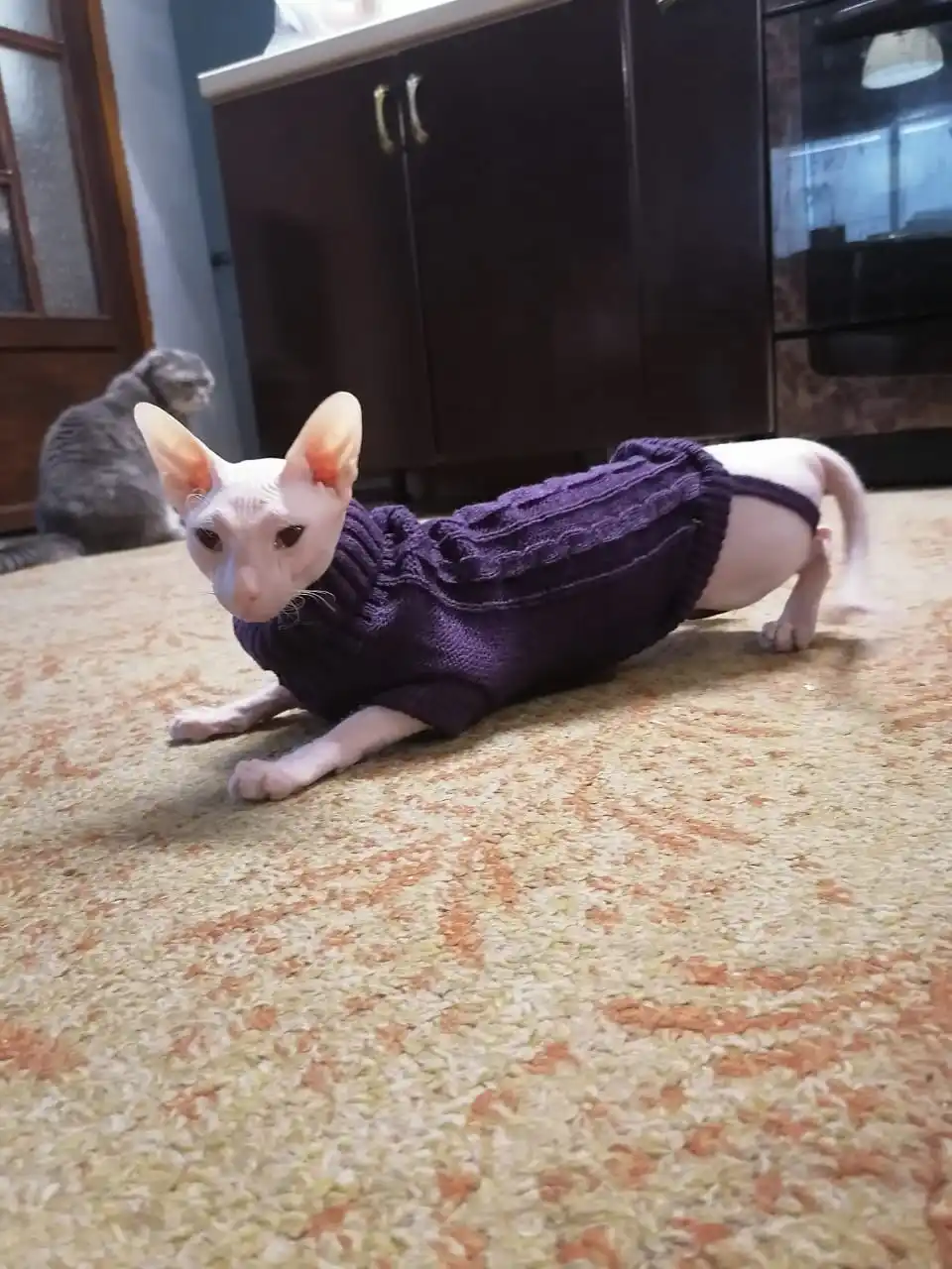 Отличный свитер. Размер подошёл на девочку канадского сфинкса 4 месяца. Доставка быстрая, спасибо.